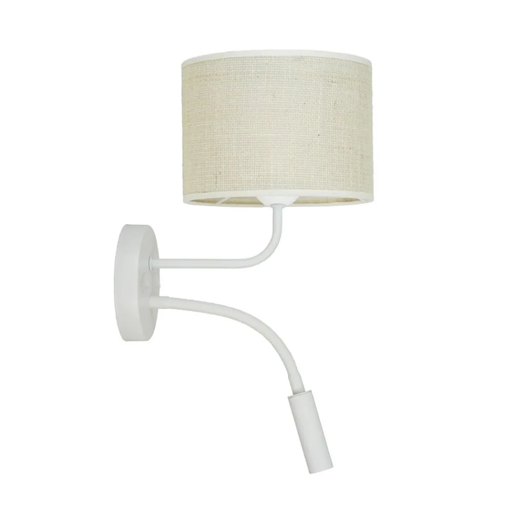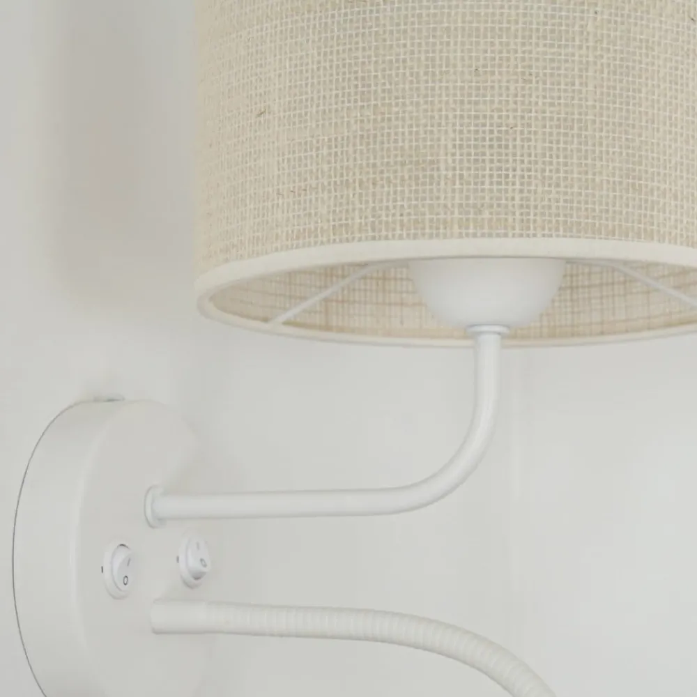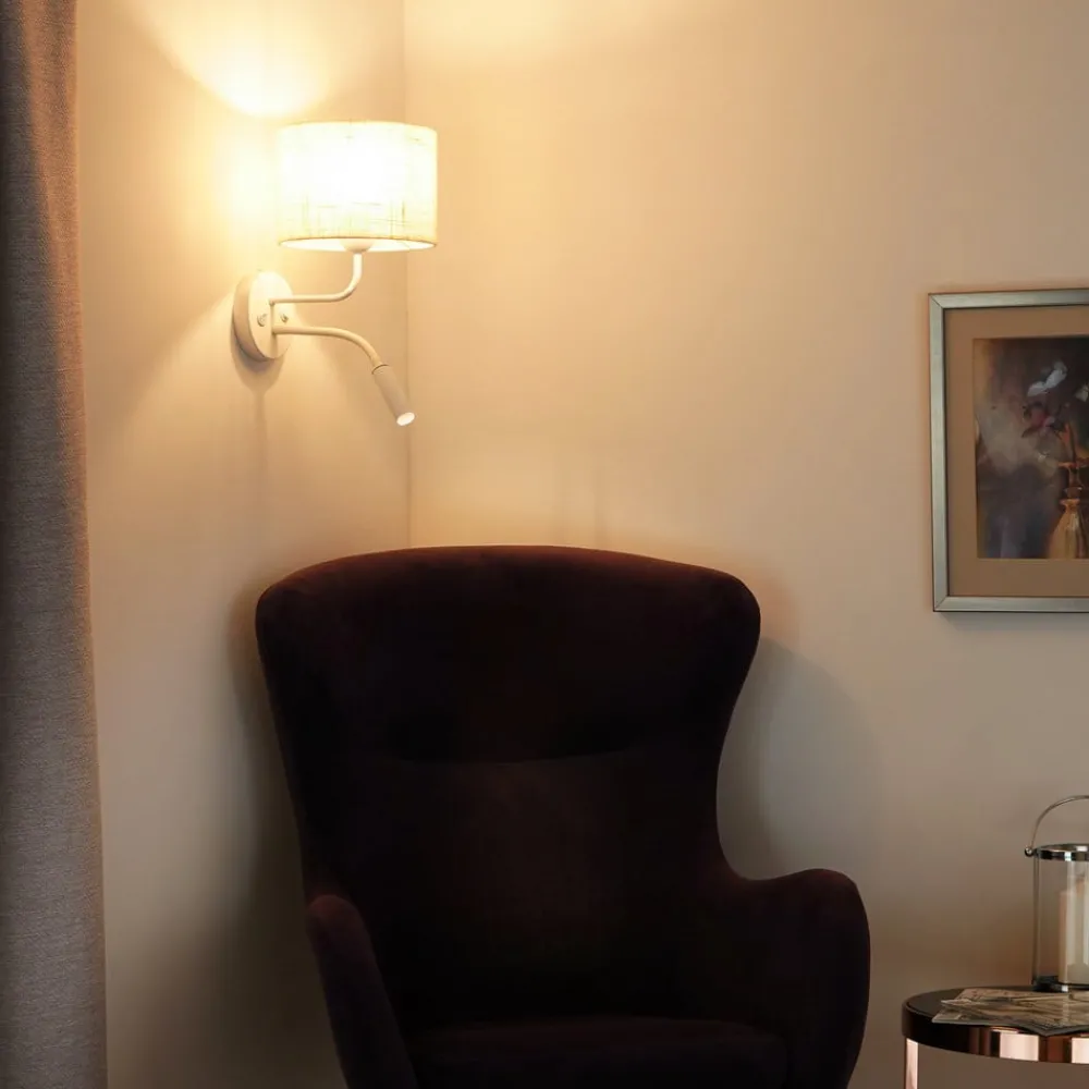 Vegglampe, jute, hvit/beige, leselampe