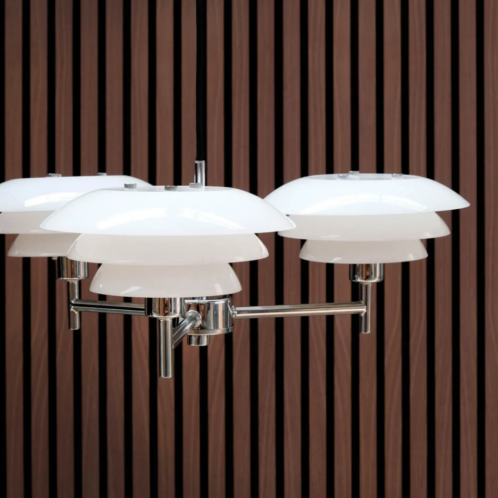DL20 lysekrone med 3 lyskilder DL20 lysekronen er en av de nyere modellene i serien. Lysekronen beholder DL20-seriens vakre og estetiske design samt det vakre og varme lyset. Lampeskjermen i opalglass er et gjennomgående tema, slik at lampene kan mikses og matches innenfor serien – eksternt dimbar
