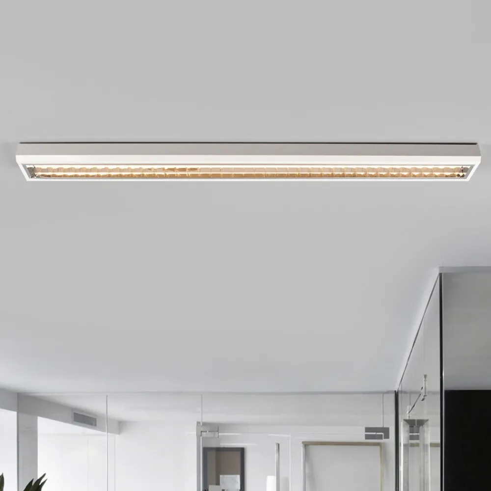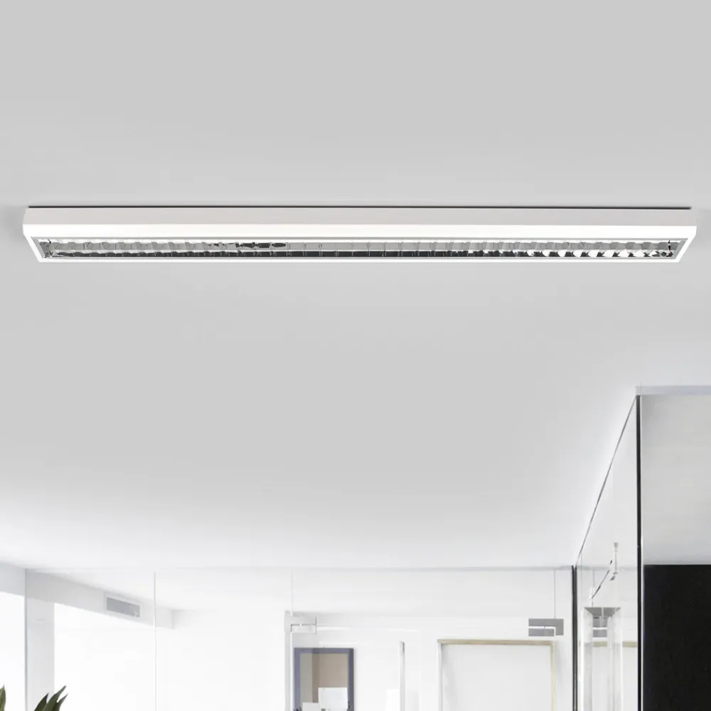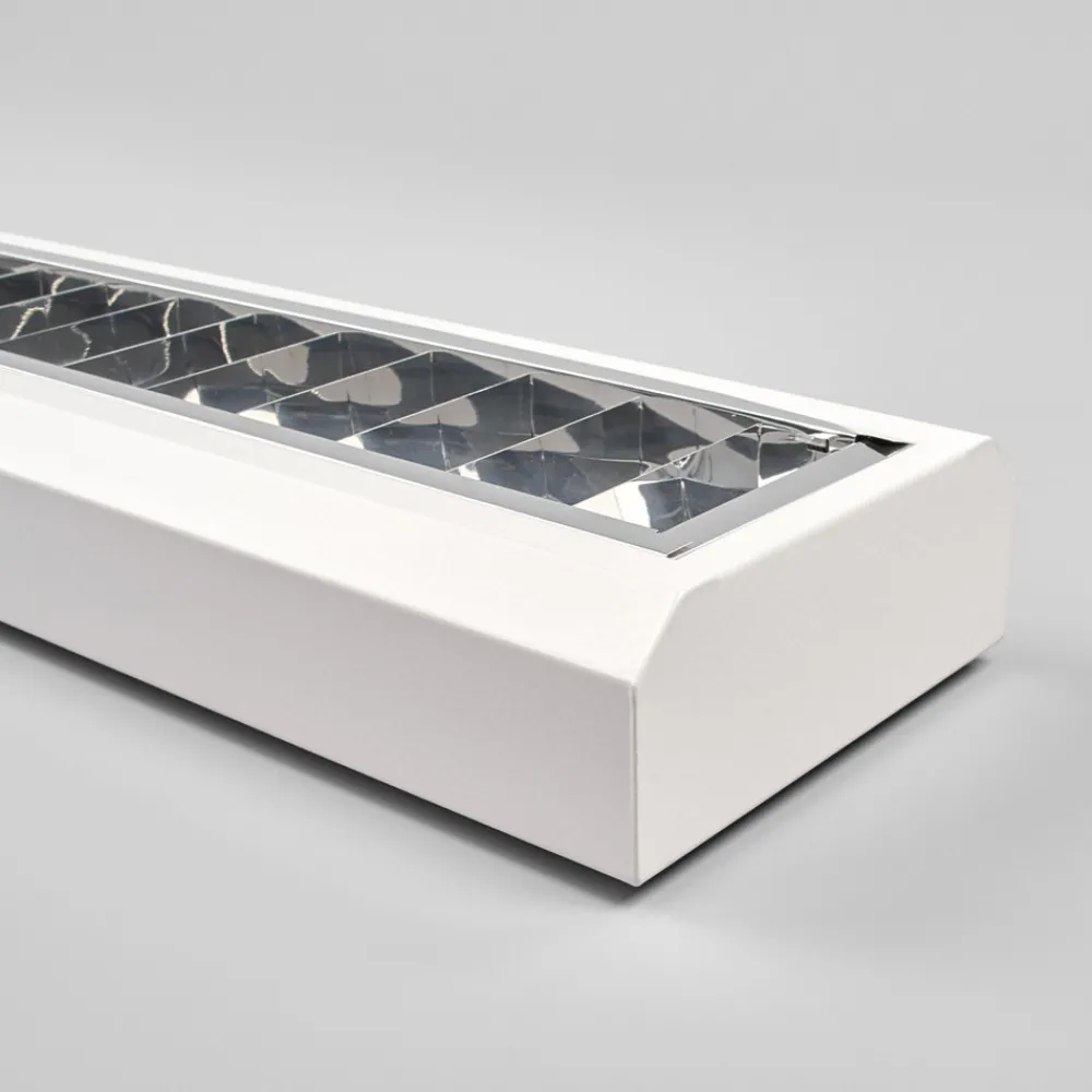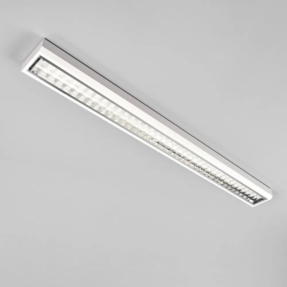 Denne rasterlampen for påbygging gir blendefri kontorbelysning til arbeid ved dataskjerm. Den er utrustet med nyeste LED-prisme-teknologi fra Osram. Den er UGR-konform, dvs den oppfyller normene for blendefri belysning ved arbeid ved dataskjerm. Den innbygde rasteren er en parabolspeilraster i høyglanset aluminium med høy renhet (60°). Lampehuset er i stålplate.