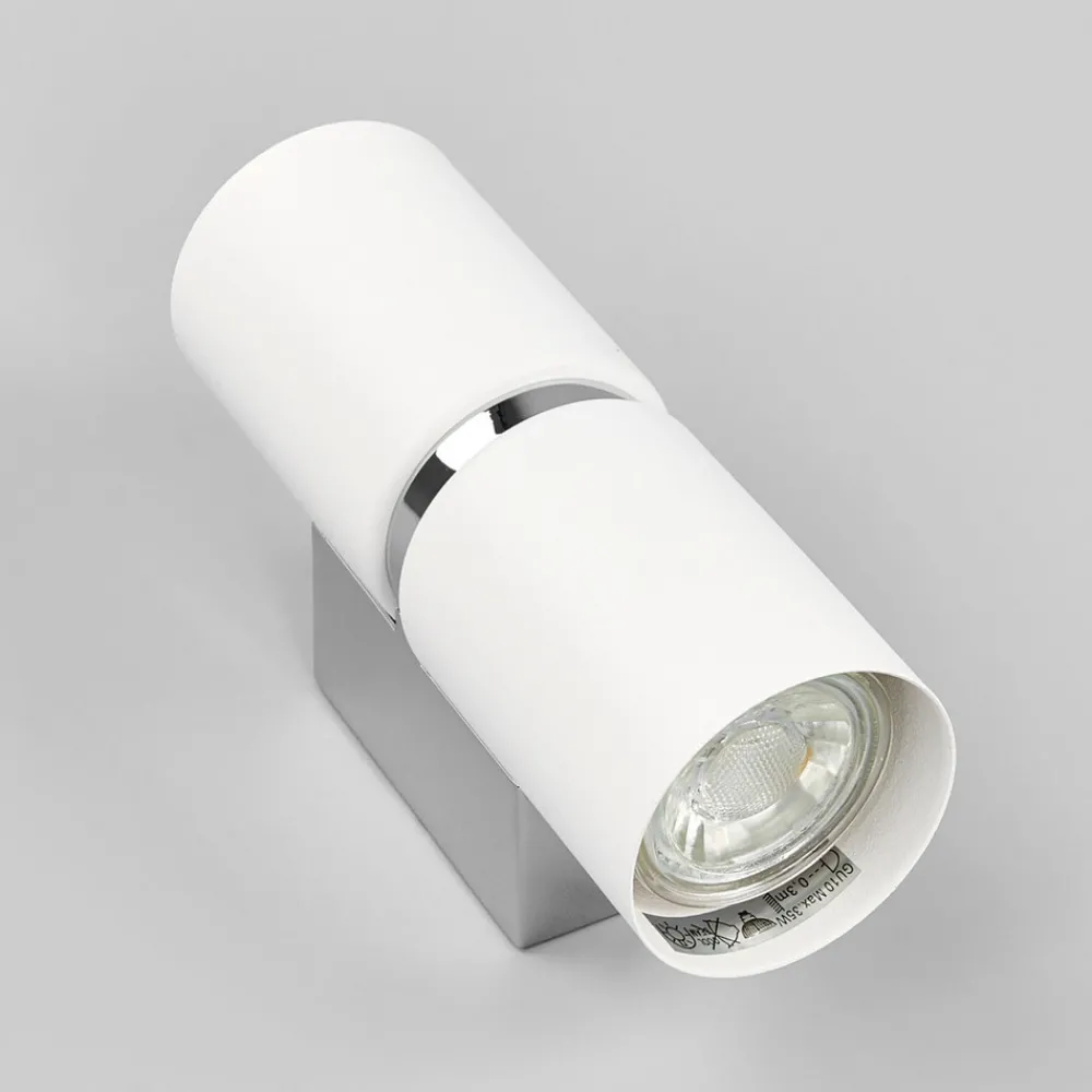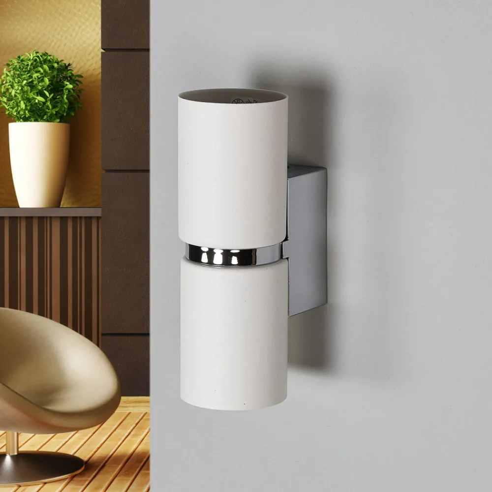 Lyset fra Passa- vegglampe skinner ikke bare oppover og nedover fra den sylindrisk formede lyskroppen, som er plassert på en veggfeste av stål, men også gjennom en sentral lysspalte. Dette fremkaller et magisk lysbilde, som ikke bare fremhever selve lampen fantastisk, men også fremhever stuen. Siden to GU10 LED-pærer allerede er inkludert i leveransen, er effektiv og langvarig drift mulig.