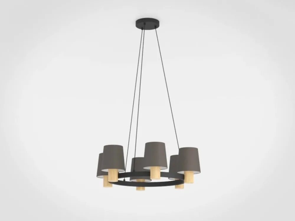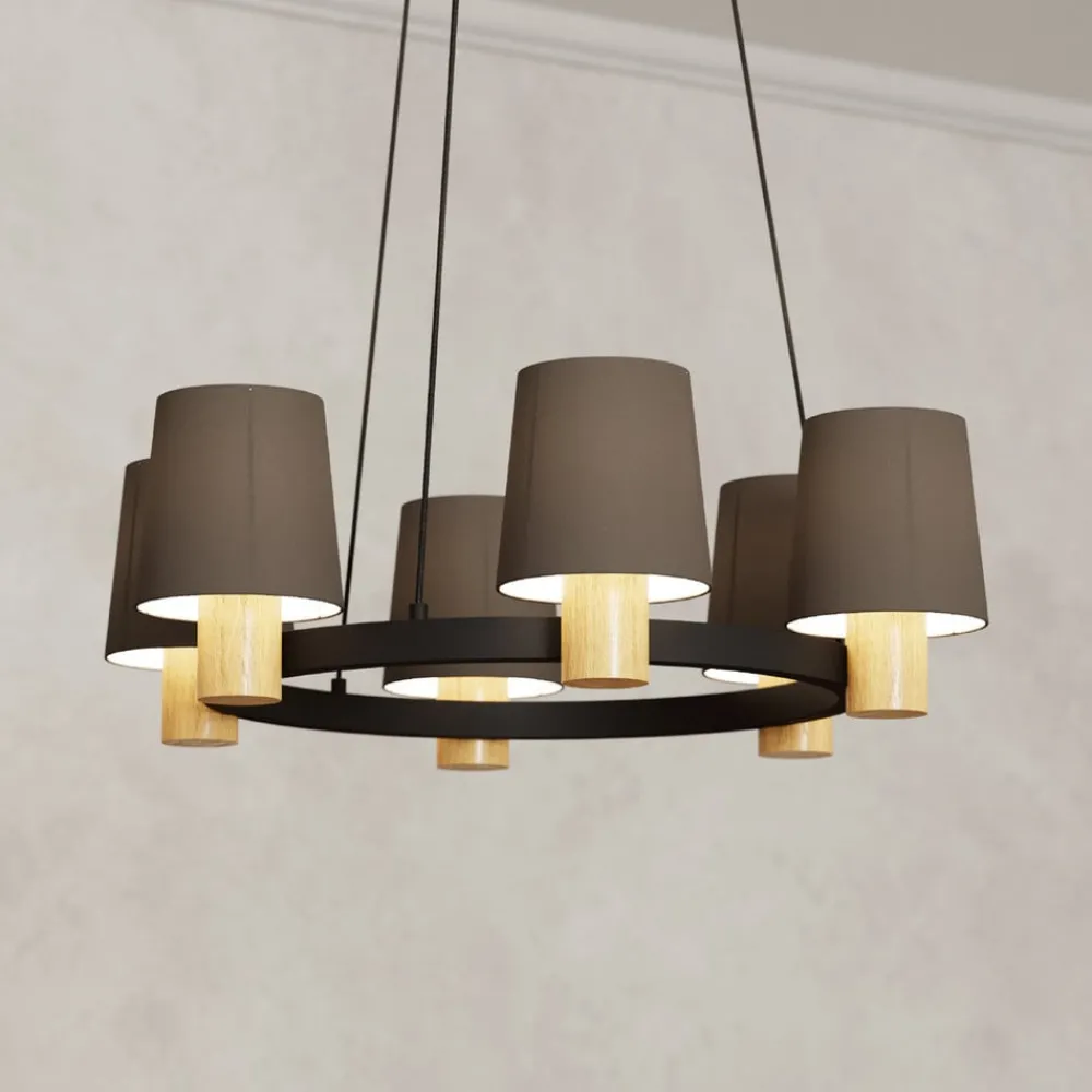 Lysekrone Edale, 6 stoffskjermer cappuccino, rund