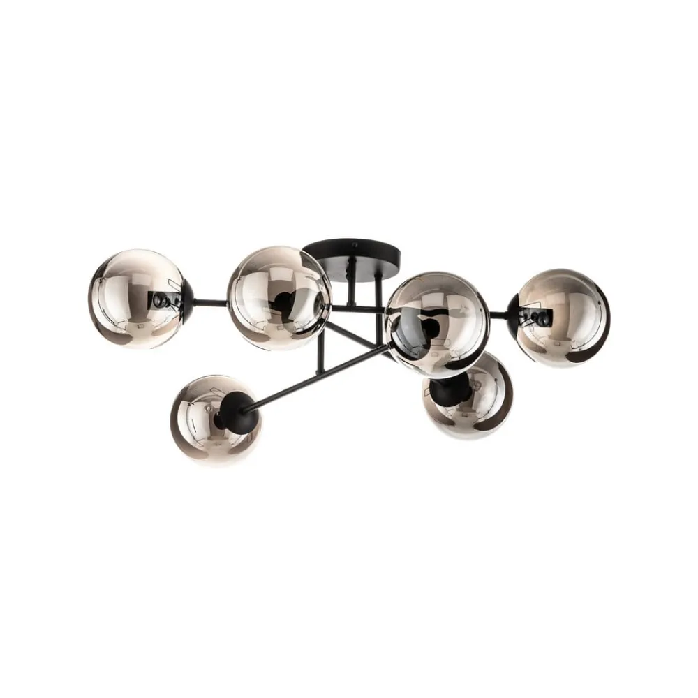 Glassy taklampe, svart, grafitt, glass, 6 lyskilder, E14