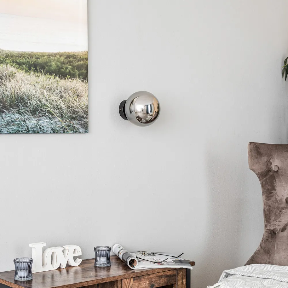Vegglampe Glassy imponerer med sitt moderne design, som består av en harmonisk kombinasjon av pulverlakkert stål og glass. Den elegante fargen i svart og grafitt passer perfekt inn i ulike oppholdsrom som stue, soverom, gang og spisestue. Med en diameter på 14 cm er den en kompakt og stilig belysningsløsning som kan brukes både som Akzentlicht og til generell rombelysning.
