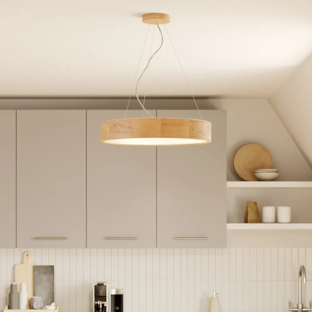 Envostar hengelampe Kerio, Ø 47 cm, eik