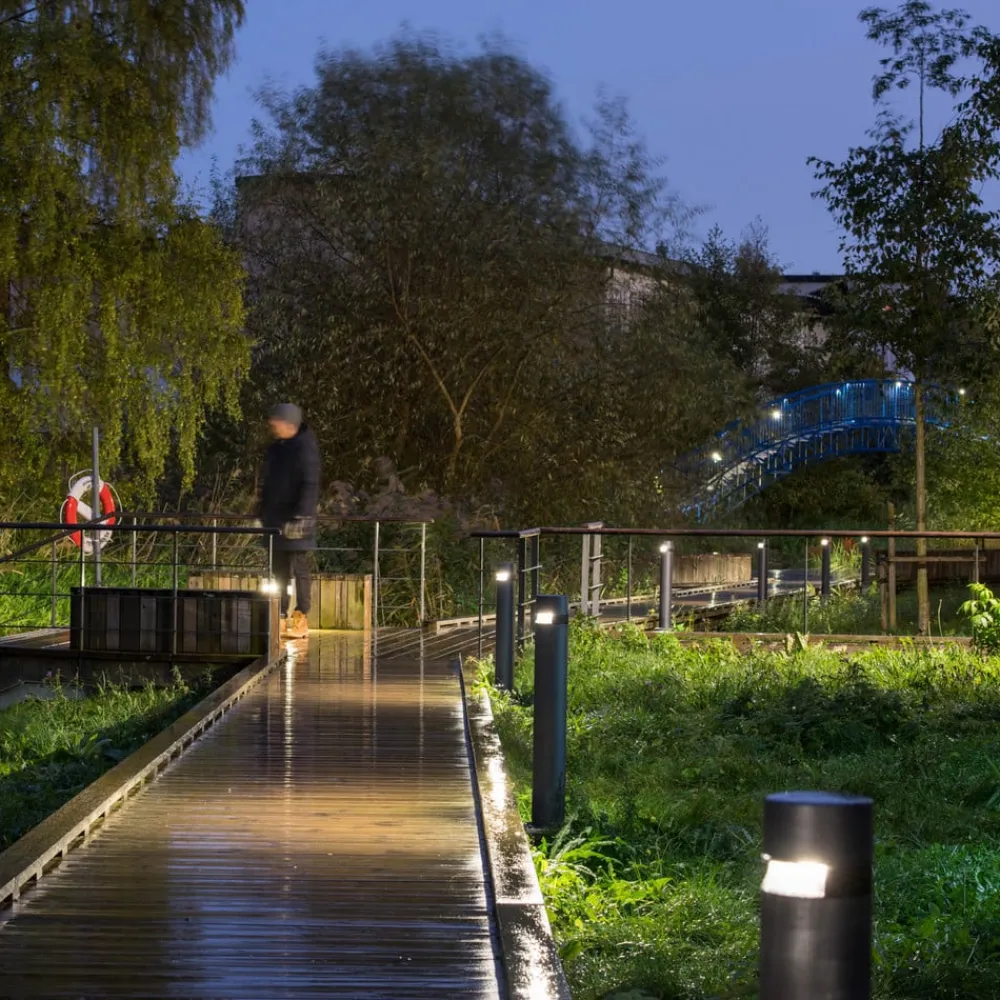 Castor LED-gatelampe aluminium, har form av en enkel grafittsylinder. Den øvre delen er forsynt med en utsparing som går rundt; LED-ene med høy effekt er integrert her. Lyset deres sendes ut diagonalt nedover hele veien av en 360° lyslederring laget av optisk polymer, slik at gulvflaten er opplyst på alle sider.