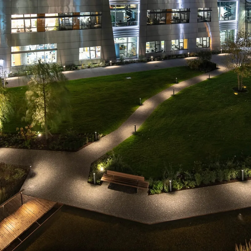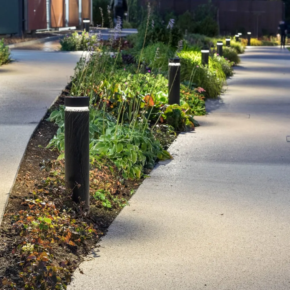 Sylindrisk LED-gatelampe Castor fra ERCO, radielt utstrålende gulvvasker