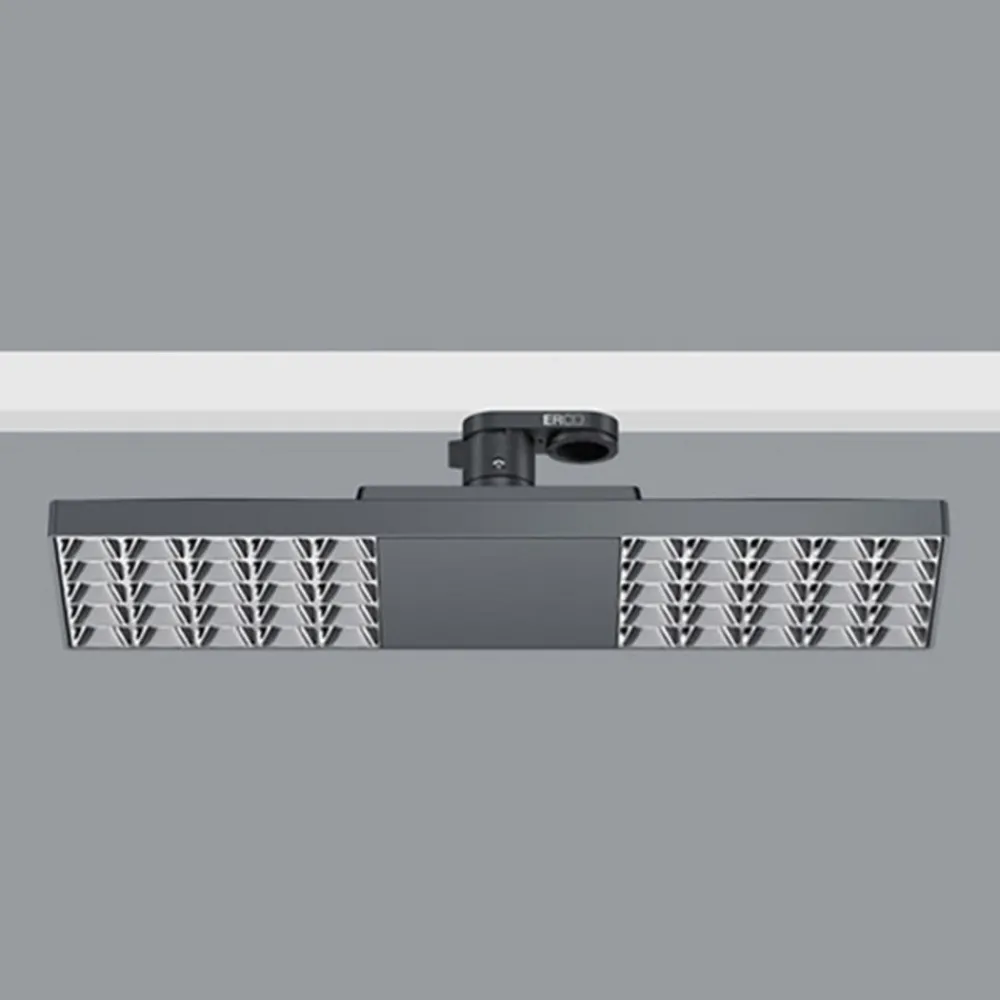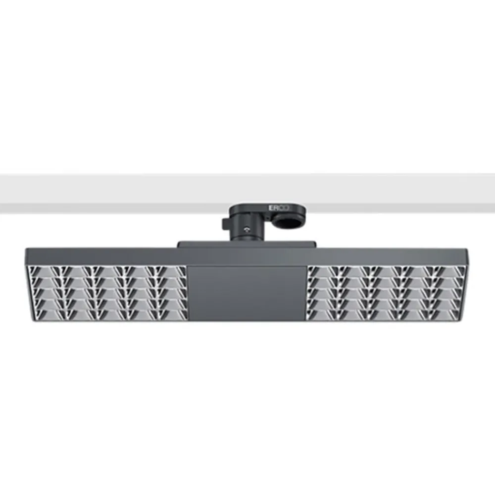 Jilly LED-rasterlampe rasterarmatur fra ERCO for styring via Casambi app for 230 V 3-fase skinner – 15 W LED, lysfordeling oval bred flom (83° / 61°)