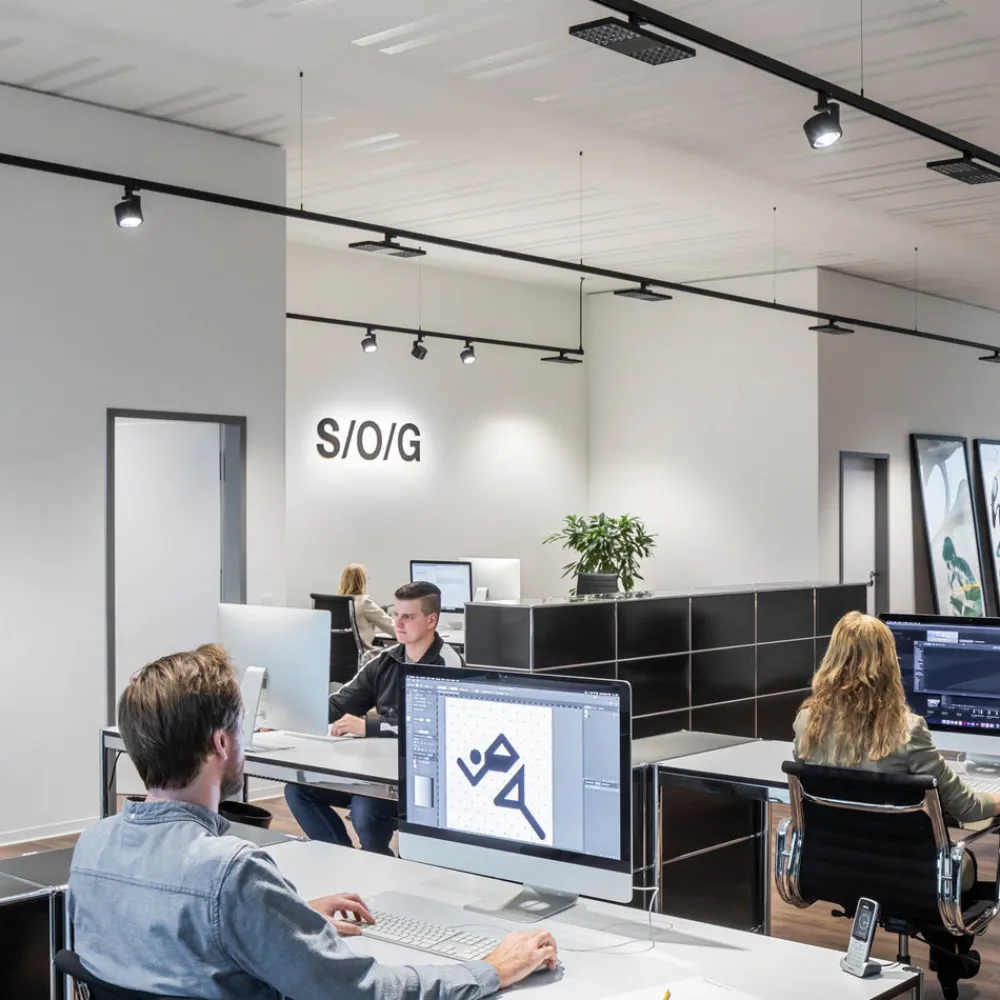 Parscan er en skinnespotlight fra ERCO med middels bred lyskjegle (flom 29°) som muliggjør behovsbasert areal- og presentasjonsbelysning i detaljhandel, utstilling, forretnings- og konferanserom. En Spherolit-linse og kollimatoroptikk laget av optisk polymer sikrer emisjonsegenskapene til lyset fra de innebygde LED-ene med høy effekt. lampehode og brakett er laget av støpt aluminium, skinneadapteren er laget av plast. Takket være 360° rotasjon og 90° tilting kan lyset rettes til ønsket område. Parscan kan kobles til nettbrettet/smarttelefonen via Bluetooth for å styre den med Casambi appen.
