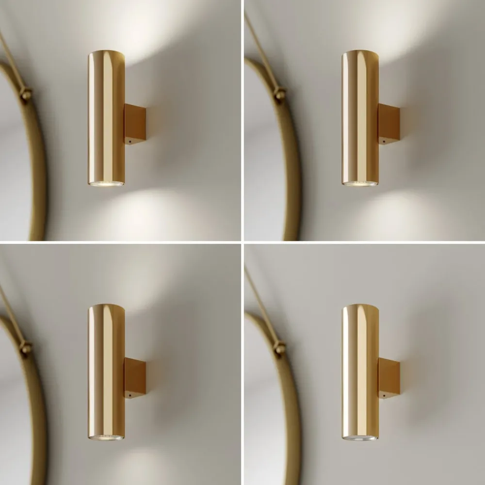 Euluna vegglampe Marion i høykvalitets stål med elegant messingfinish kombinerer moderne design med funksjonell belysning. Den stilfulle utseendet passer perfekt inn i ulike oppholdsrom som stue, soverom, gang og spisestue. Lampen gir et fascinerende opp- og downlight som sørger for en harmonisk lysfordeling og understreker rommets effekt på en målrettet måte.