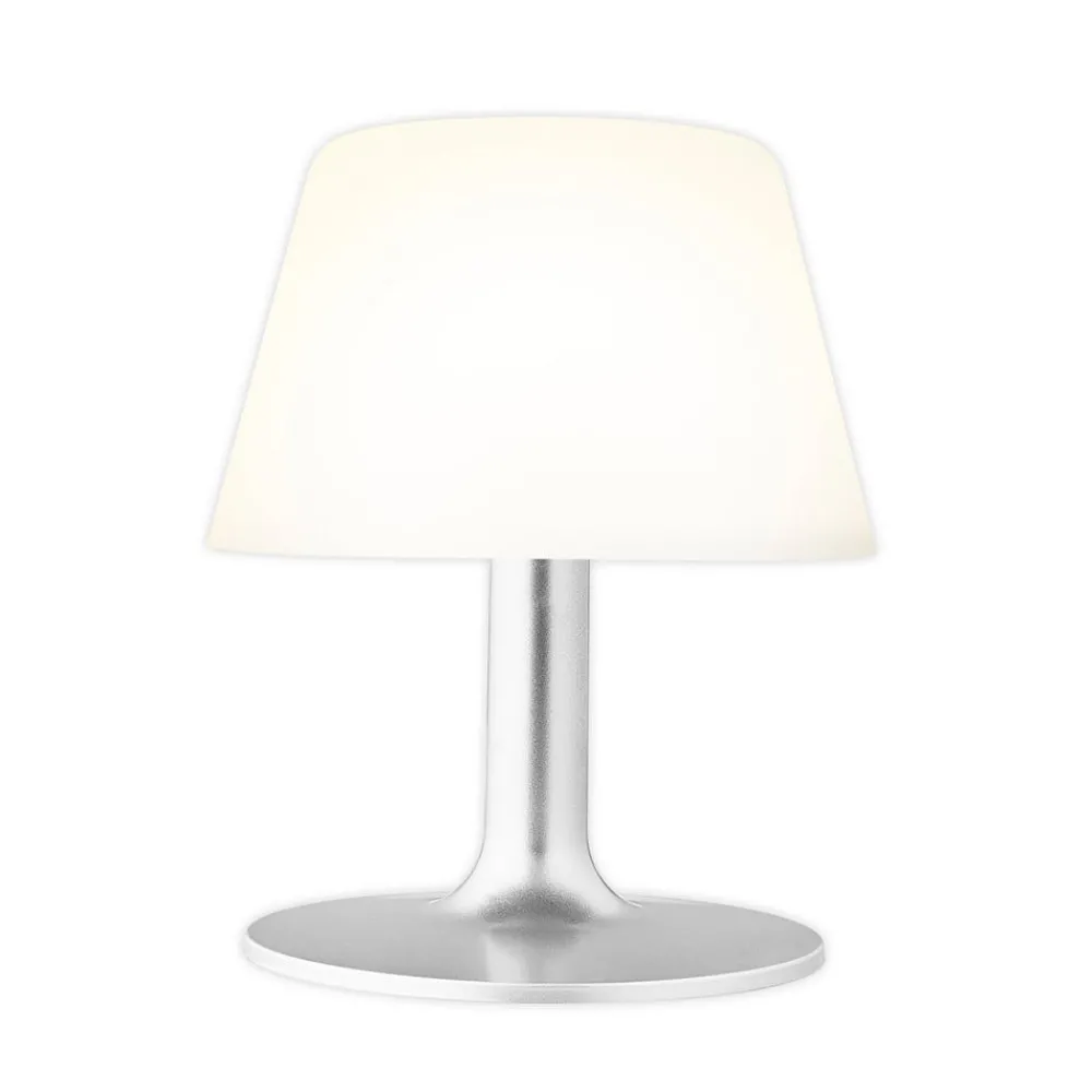 Integrert skumringssensor: SunLight LED-bordlampe med solcellepanel og oppladbare batterier, IP65 Den sølvlakkerte sokkelen på SunLight LED-bordlampen, som er støvtett og beskyttet mot vannstråler, er laget av stål. Den opalhvite skjermen er laget av plast. Den kan slås på automatisk takket være skumringssensoren og energisparingsfunksjonen: Den slår seg på i skumringen og slår seg av igjen etter 6 timer. Den kan brukes uavhengig av strømnettet, da det er integrert et solcellepanel og oppladbare batterier. Tekniske egenskaper – Kan brukes uavhengig av strømnettet takket være solcellepanel og oppladbart batteri – Inkluderer skumringssensor – Energisparingsfunksjon: slås av automatisk etter 6 timer – Belysningstid: opptil 20 timer – Ladetid: ca. 8 timer – Støvtett og beskyttet mot vannstråler (IP65)