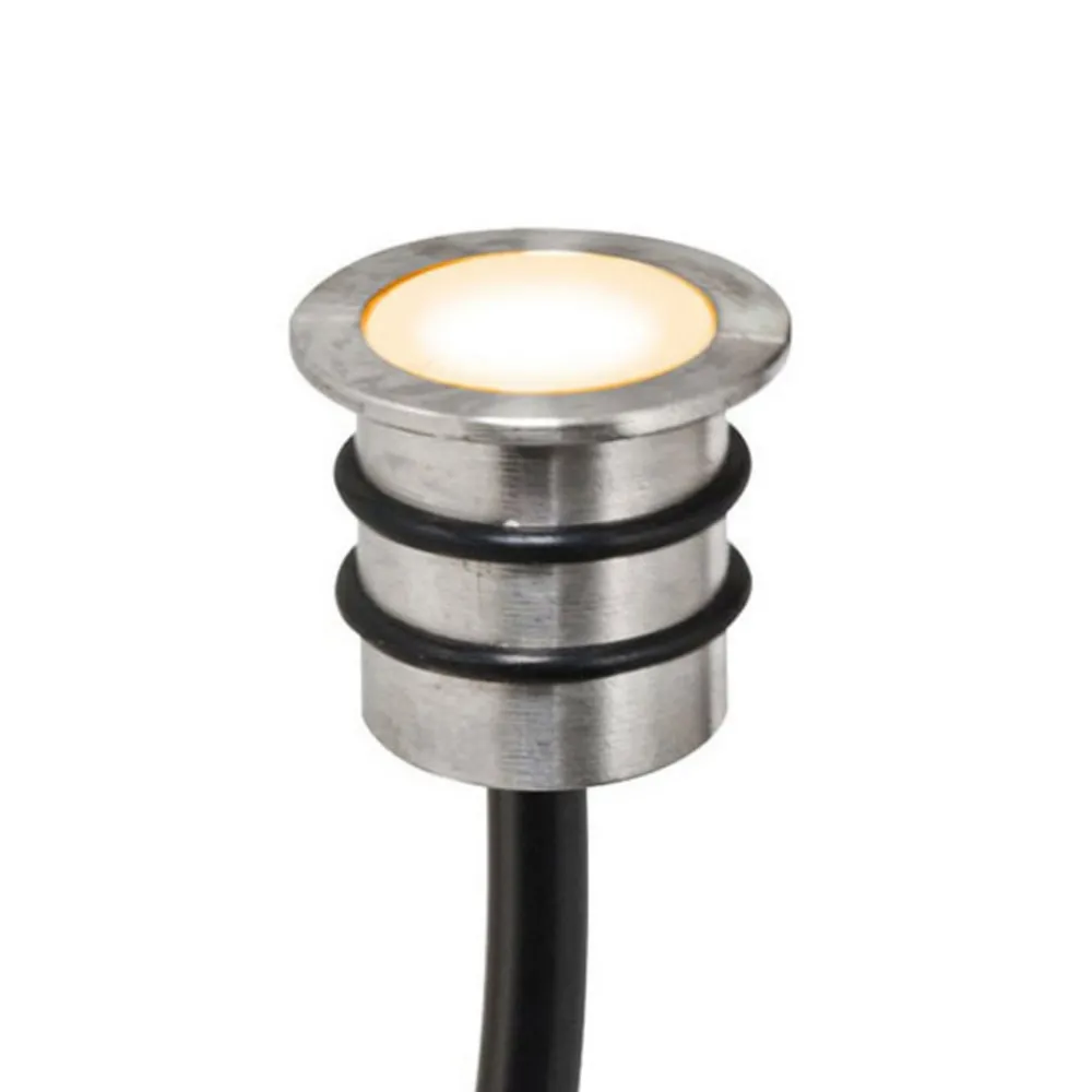 For visuelle aksenter innendørs eller utendørs – rund 12 V DC LED-innbygningslampe LD21, Ø 1,8 cm Lavvolts LED-innbygningslampe LD21 med hus i rustfritt stål gir et moderne lyspunkt i mange miljøer. En hvit LED er integrert i det runde lampehodet. Den innfelte armaturen gir visuelle aksenter i trapper, med flere enheter for en dekorativ stjernehimmel eller som aksent- og orienteringslys på terrassegulv og innkjørsler i uteområder. Kan også brukes i møbelkonstruksjoner (MM-merking) – kan belastes med maks. 1 000 kg, 25 km/t – inkludert 2 m lang tilkoblingskabel med frie ledningsender – svært bredstrålende (100°)