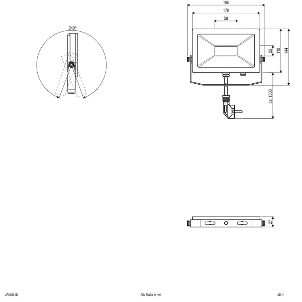LED utendørs spotlight LFA, vidstrålingsvinkel, svingbar, med pluggkabel