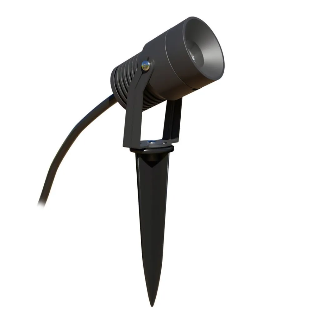 Roterende og svingbar: Merlo LED hagespotlight laget av aluminium med jordspyd, 220-240V, 3000 K