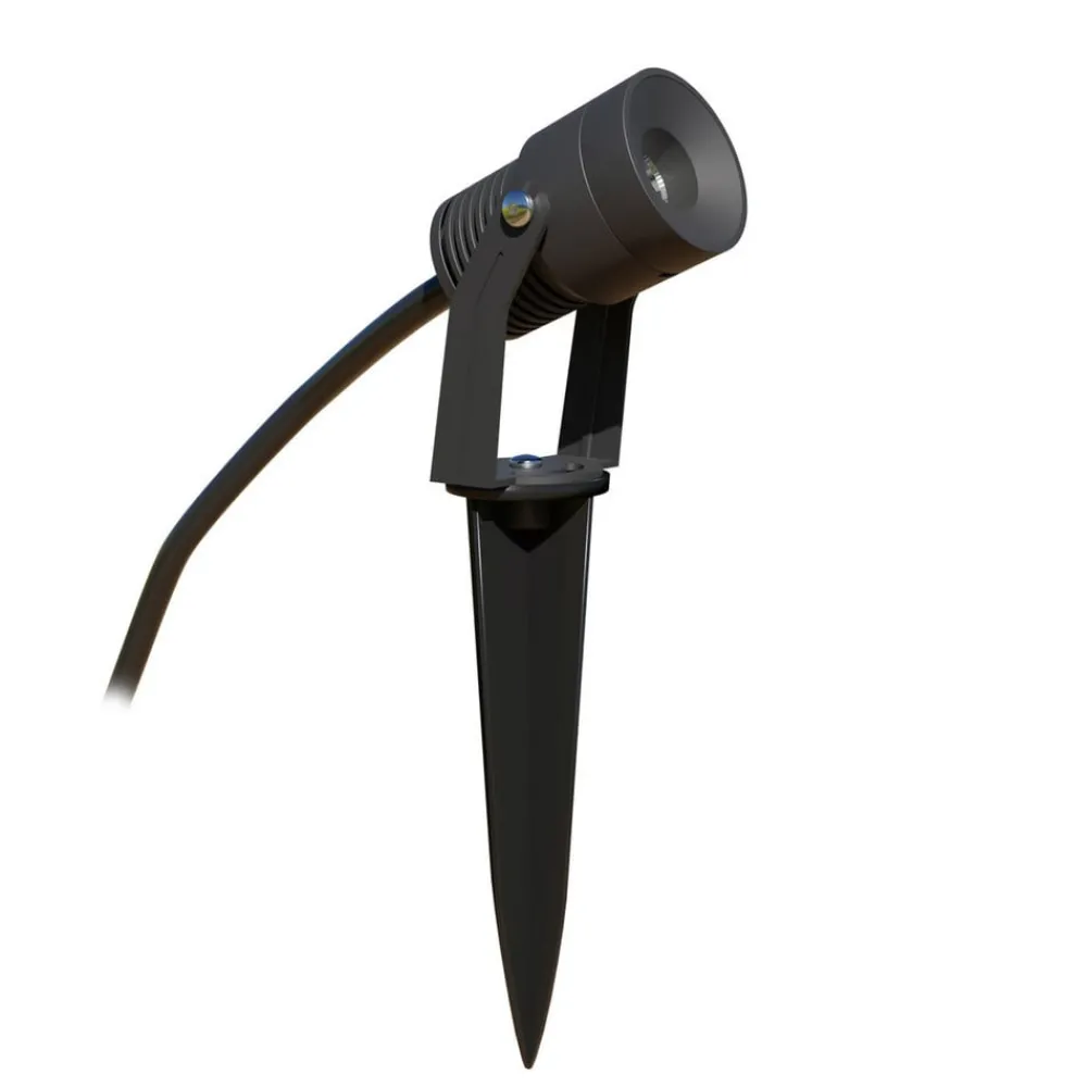 Roterende og svingbar: Merlo LED hagespotlight laget av aluminium med jordspyd, 220-240V, 3000 K