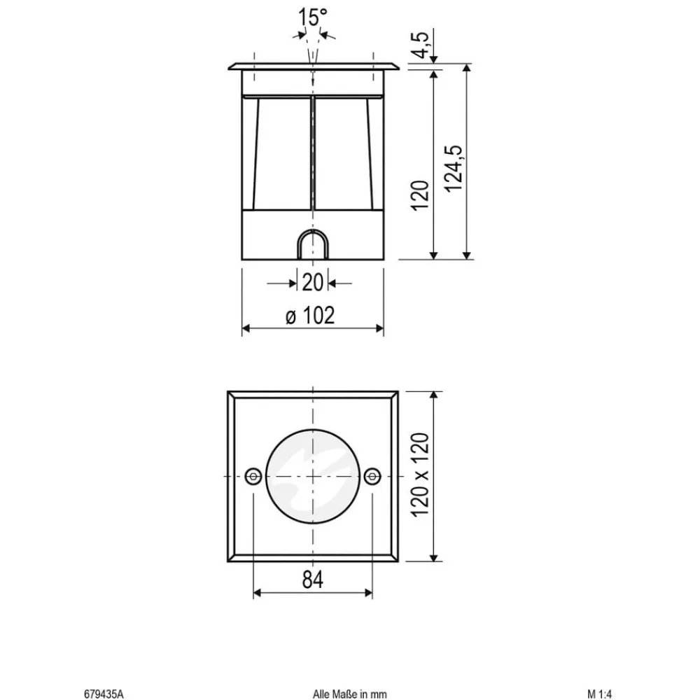 Talpa nedfelt lampe er laget av aluminium med firkantet dekkplate av V2A rustfritt stål og lampehode kan svinges 10°. Den leveres med monteringshus i plast, men kan også monteres uten. Kabelinnføringen skjer via kabelgjennomføringen på bunnen av lampen (for kabler opptil 9 mm i diameter). Den innfellingslampe er forsynt med et klart beskyttelsesglass og leveres også med et matt beskyttelsesglass for utskifting. Alle typer lyskilder kan brukes i GU10- fatning til lyset, både halogenlamper og LED-lamper.