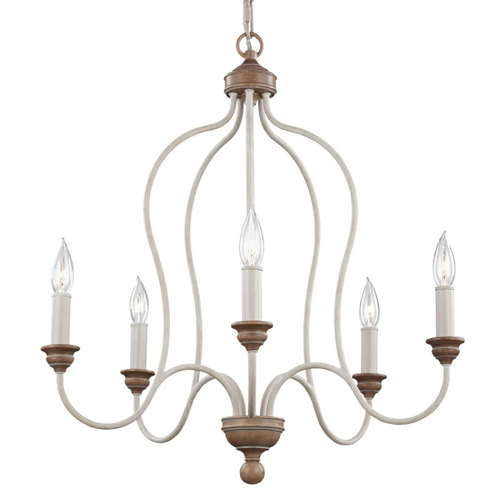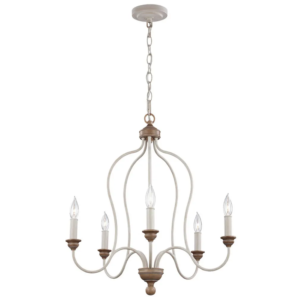 Kritthvit lysekrone Hartsville 5 lyskilder i våningshusdesign