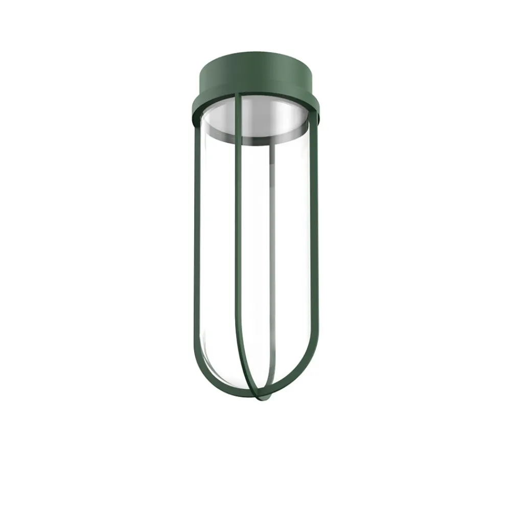 Den ytre lyskroppen til den robuste og høykvalitets In Vitro LED-utetaklampen fra Philippe Starck fra FLOS er laget av presstøpt og ekstrudert aluminium. Innsiden er en klar borosilikatglass som ser ut som den er ment å beskytte pæren. Men det som tidligere ble brukt som beskyttelsesglass for lyspæren er nå bare et dekorativt tilbehør, fordi In Vitro er utstyrt med permanent installerte lysdioder, som er plassert i det øvre området av lampen bak en opal diffusor.