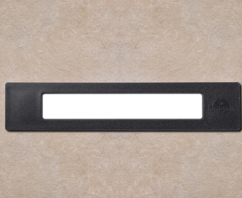 Rektangulær innfelt vegglampe Nina med opal diffusor og justerbar lysfarge Den innfelte vegglampen Nina for utendørs bruk skaper nyttig og behagelig orienteringsbelysning i inngangspartier, langs trapper og på gangstier nær fasaden. Det svarte, rektangulære huset av robust kunstharpiks er utstyrt med en lysutgang av opal PMMA-plast, som gir en homogen spredning av lyset. LED-lyskilden R7s er utstyrt med en glidebryter som gjør det mulig å velge mellom varmhvitt, universalhvitt eller dagslyshvitt lys – Beskyttelsesklasse: IP55 – Egnet for bruk nær sjøen, UV-bestandig og rustfri