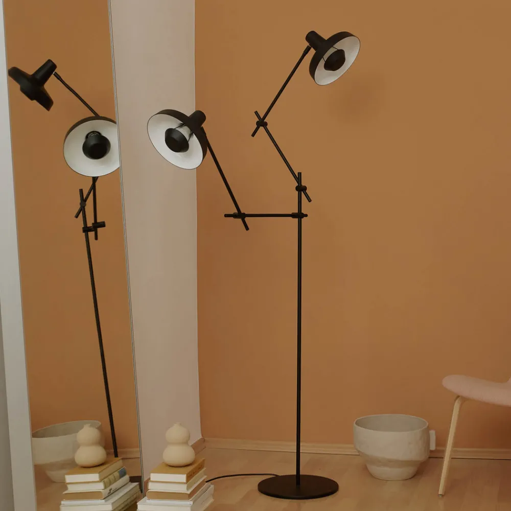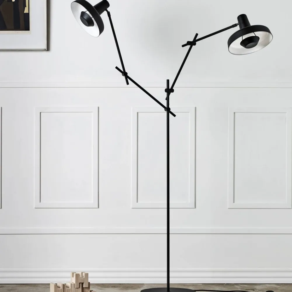 To-pære gulvlampe Arigato med runde skjermer og justerbar ramme