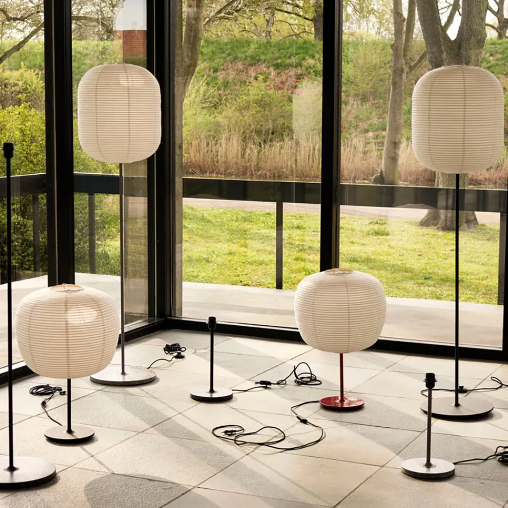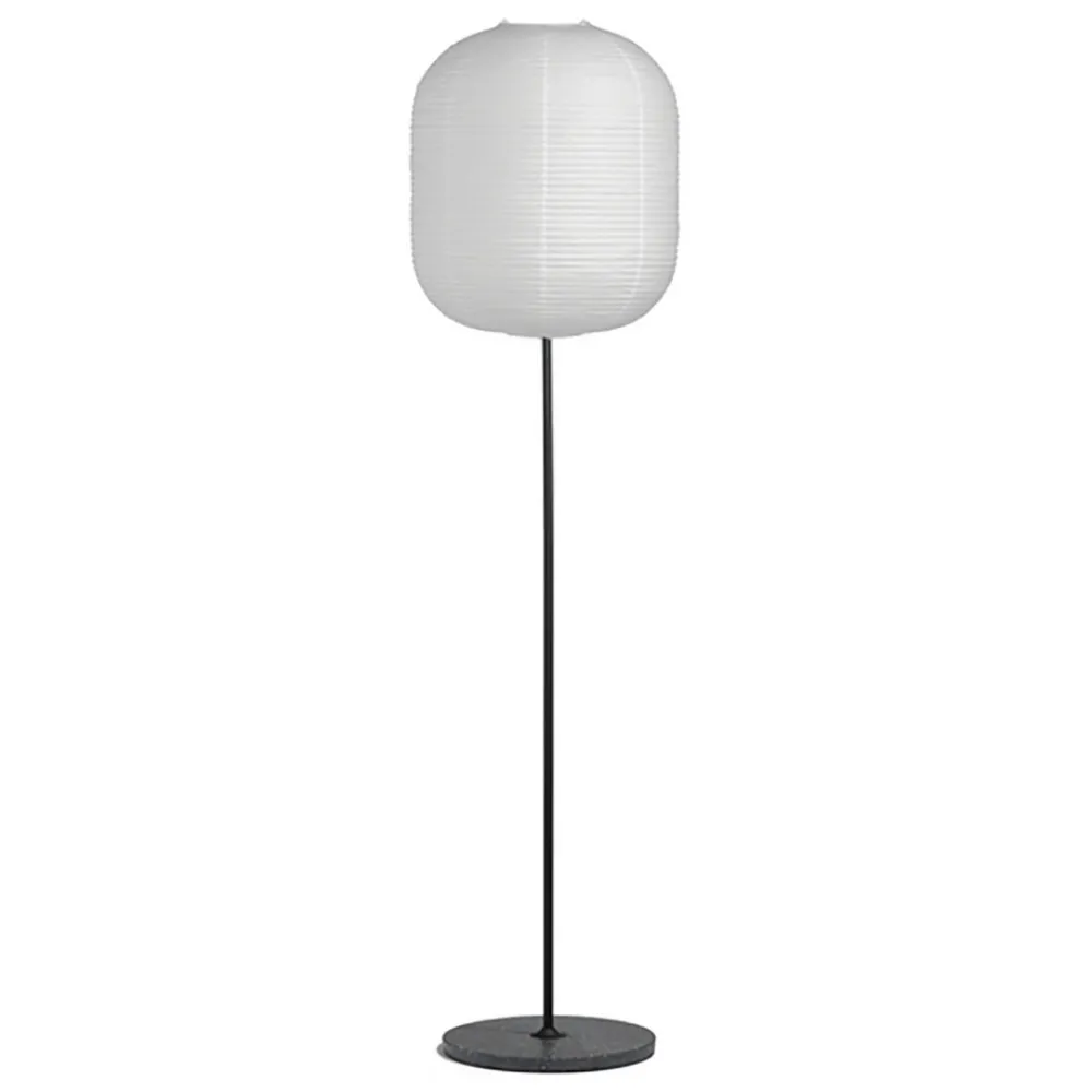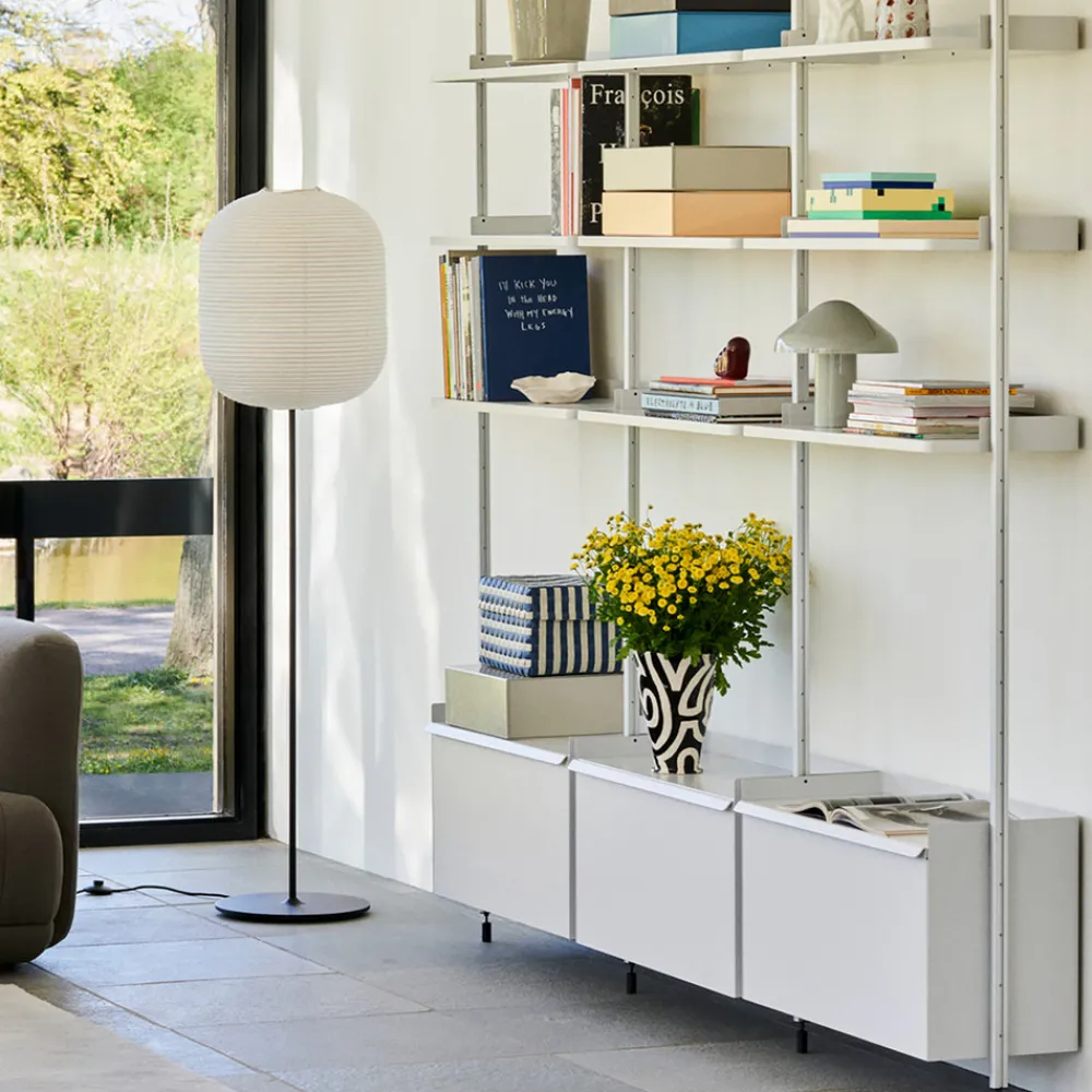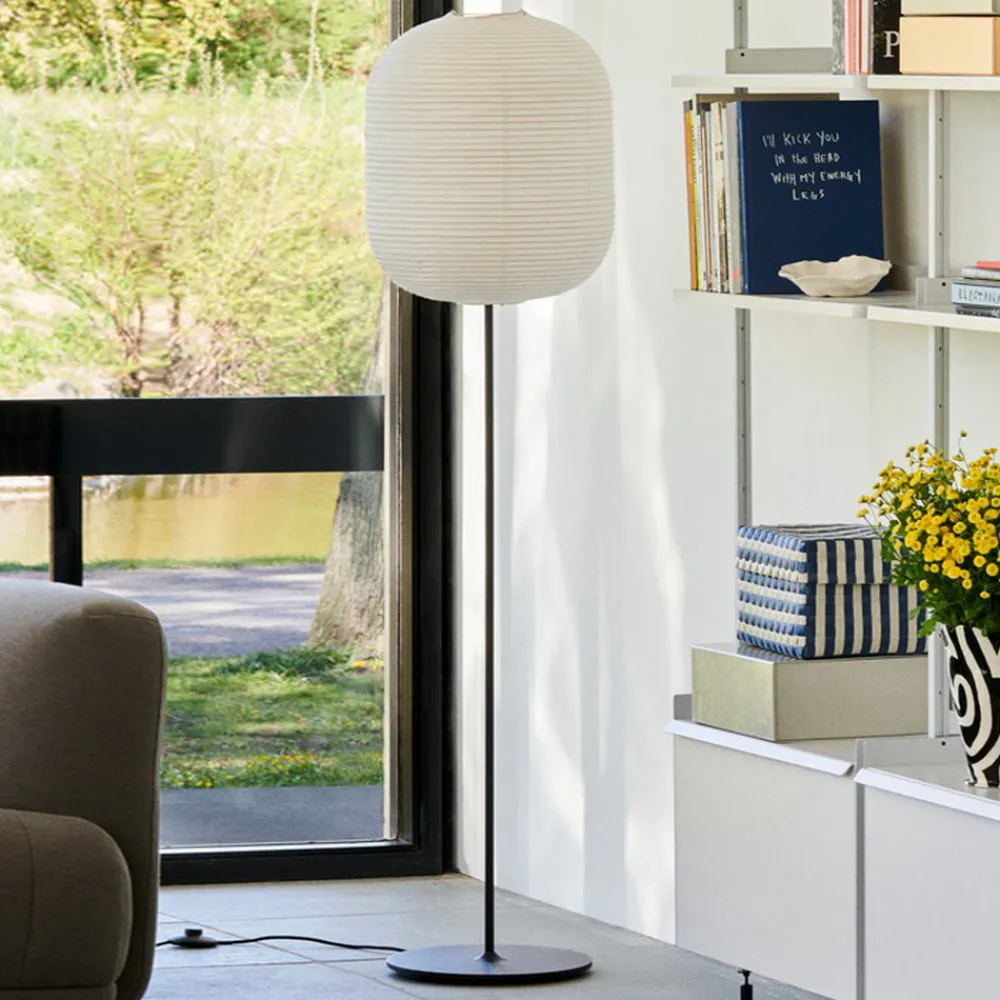 Denne gulvlampen tiltrekker seg alles oppmerksomhet i alle rom. Metallrammen er tidløst enkel med en rund base og slank rammestang, fokuset til betrakteren er fullstendig på den estetisk utformede, langstrakte skyggen laget av rispapir. Common-serien fra produsenten Hay inkluderer også bordlamper, slik at begge lampetypene utmerket kan kombineres for et moderne lyskonsept.