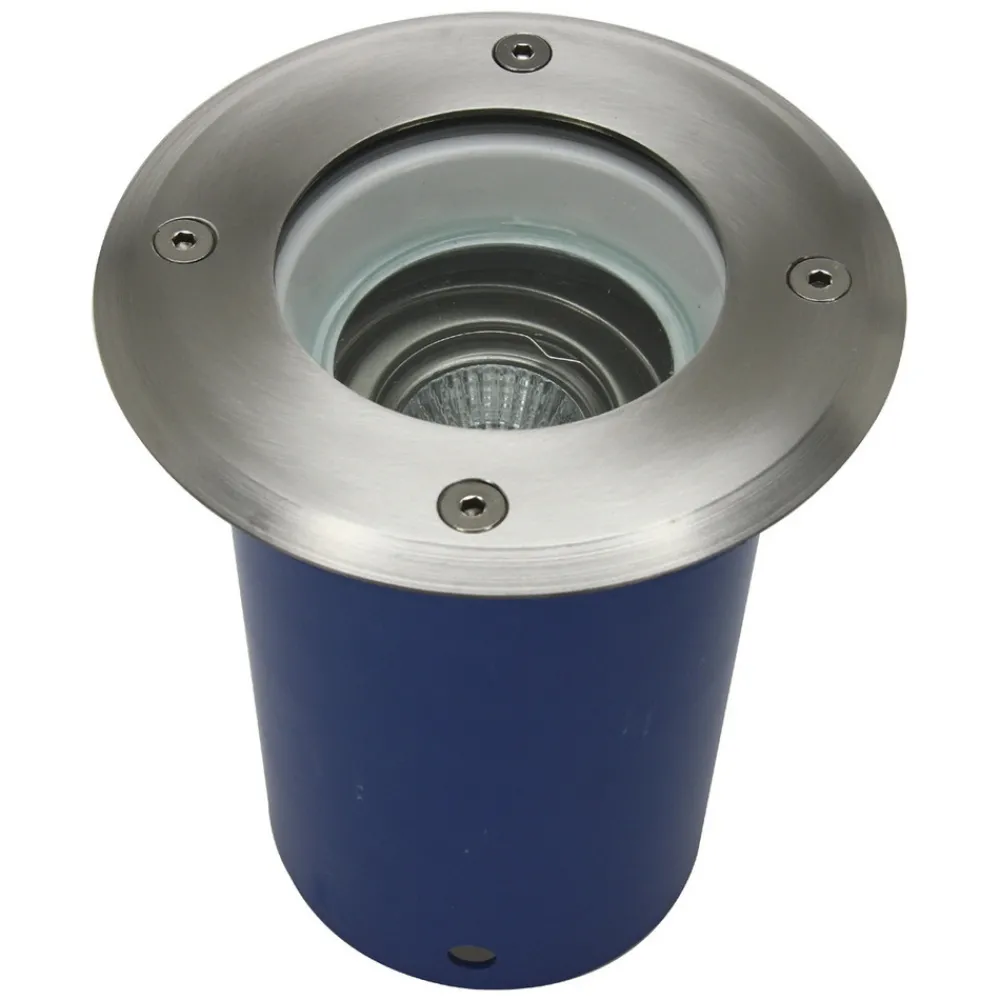25° svingbar bakkespot for utendørs bruk Bakkespotten i rustfritt stål er perfekt for belysning av områder eller gjenstander utendørs. Spotlighten består av et hus i trykkstøpt aluminium med plate i rustfritt stål og monteringshylse i plast. En 35 watts pære er inkludert i leveransen. Installasjonsdiameteren er 14,5 cm. Merk: Ved installasjon av nedfelte lamper må man sørge for effektiv drenering og et egnet grusbed. Ikke installer i fordypninger og forsenkninger! Det skal ikke kunne samle seg vann på lampen.