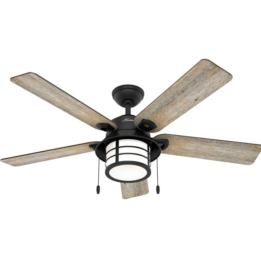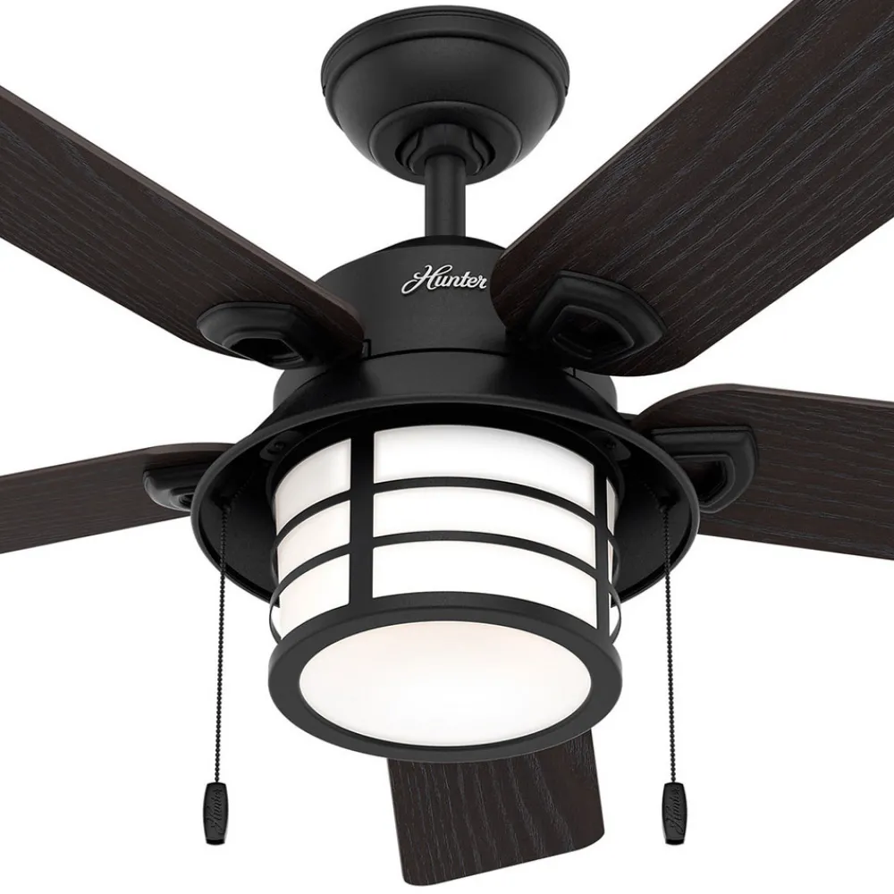 Takviften Santorini i industriell stil kan både benyttes innendørs og i beskyttede uterom, for eksempel på en veranda med tak. Lampen i midten har to E27-fatninger.