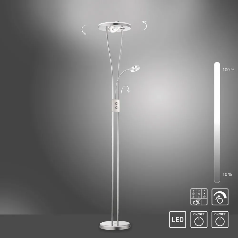 JUST LIGHT. GmbH Helia LED-gulvlampe med leselampe, stål Outlet