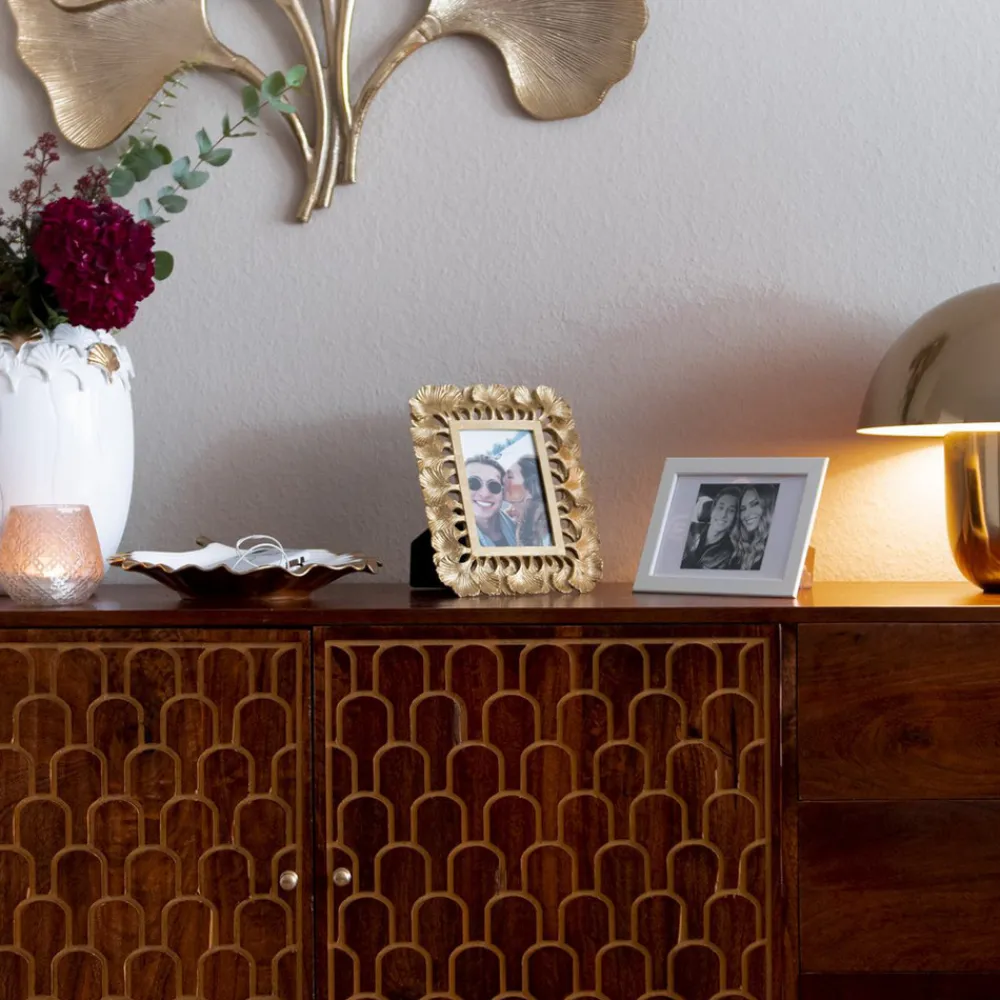 Ginkgo-bilderamme for bilde størrelse 10 x 15 cm, håndlaget av polyresin Den gullfargede, rektangulære Gingko-bilder…