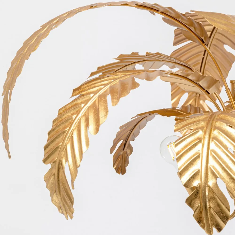 Messingfarget gulvlampe Palmera med palmeblader