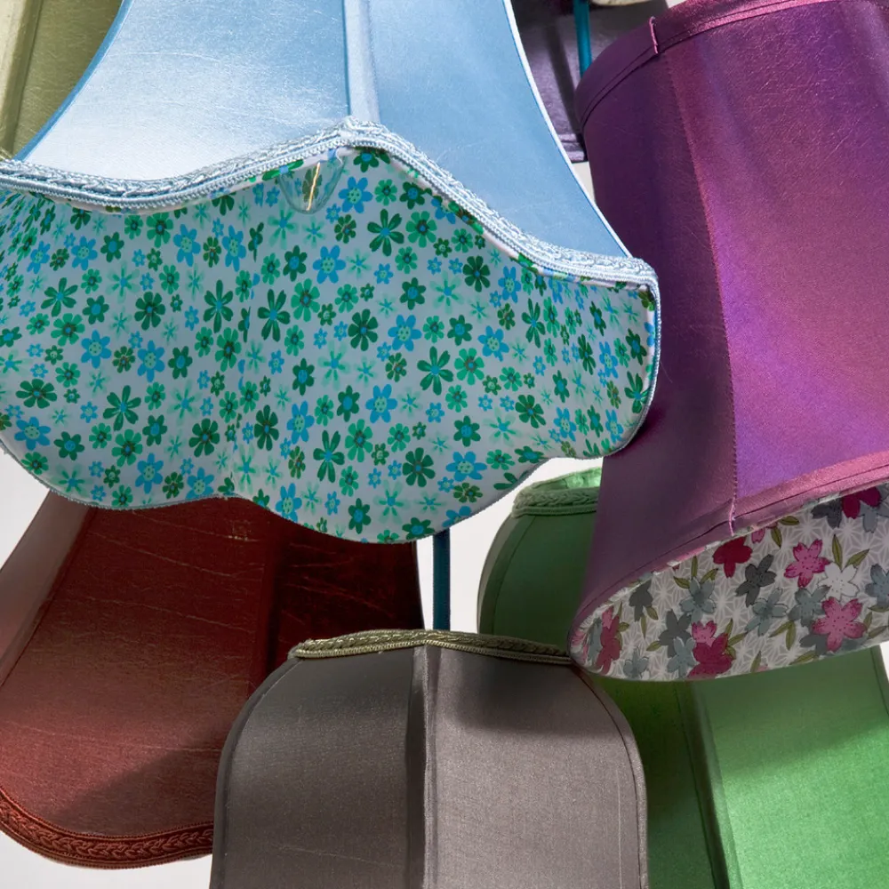 Fargerik SALOON FLOWER hengelampe med ni skjermer i forskjellige farger Du kan bli fristet til å tro at det er fargerike skjørt som svirrer rundt her. Du tar kanskje ikke feil, for hengelampen heter absolutt ikke SALOON FLOWER ved en tilfeldighet. Enten du tenker på 1920-tallets saloon eller føler deg minnet om saloonen i det ville vesten, danset man og nøt det fargerike livet i begge deler. Innsiden av de klassisk designede skjermene, hvorav noen er dekorert med blomstermønstre, er spesielt attraktive.