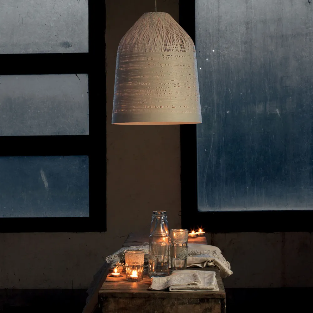 Black Out utendørspendel i glassfiberstoff Uavhengige produkter med et kreativt konsept, målrettet lyseffekt og design av høy kvalitet – det er denne kombinasjonen som gjør lampene fra den italienske produsenten Karman så populære. Black Out-serien, som er designet av Matteo Ugolini, følger også dette mønsteret. LED-pendellampen Black Out er spesielt effektiv i ellers mørke omgivelser, slik tilfellet er med den selvtitulerte blackouten. Lampeskjermen består av et nett av glassfibertråder som spinnes rundt en roterende form under produksjonen, slik at det bare er små mellomrom igjen. Den åpne skjermen gir direkte belysning, for eksempel over et utebord. Høyden på pendelen kan tilpasses etter forholdene, for eksempel ved å vikle den 5 meter lange kabelen over takbjelken.