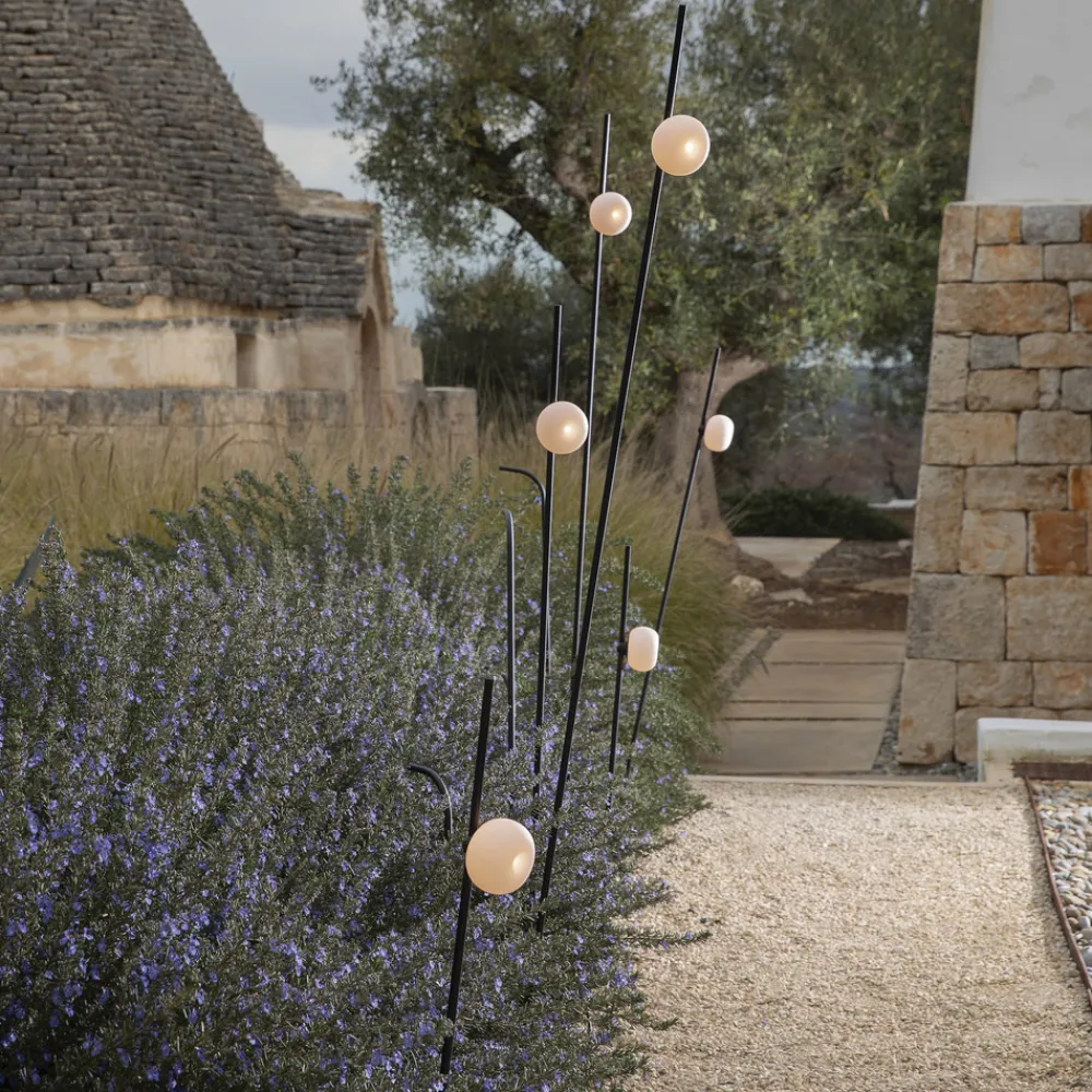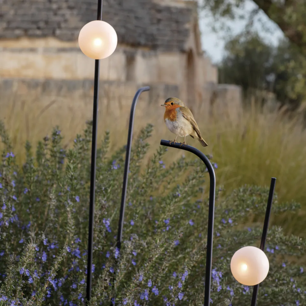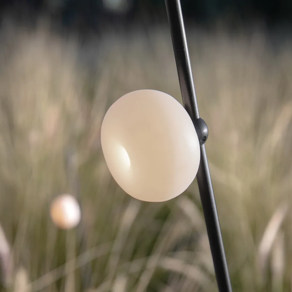 Den grasiøse og formfulle designen til LED-spydlampen Pois kommer fra designeren Matteo Ugolini og sørger for atmosfærisk belysning i ethvert uteområde. Utseendet og det organiske designet til den hvite lampeskjermen laget av fin syntetisk harpiks minner om en blomsterblomst som sitter på en grasiøs stilk, eller etter mørkets frembrudd av en ildflue som drar på en utforskende tur.