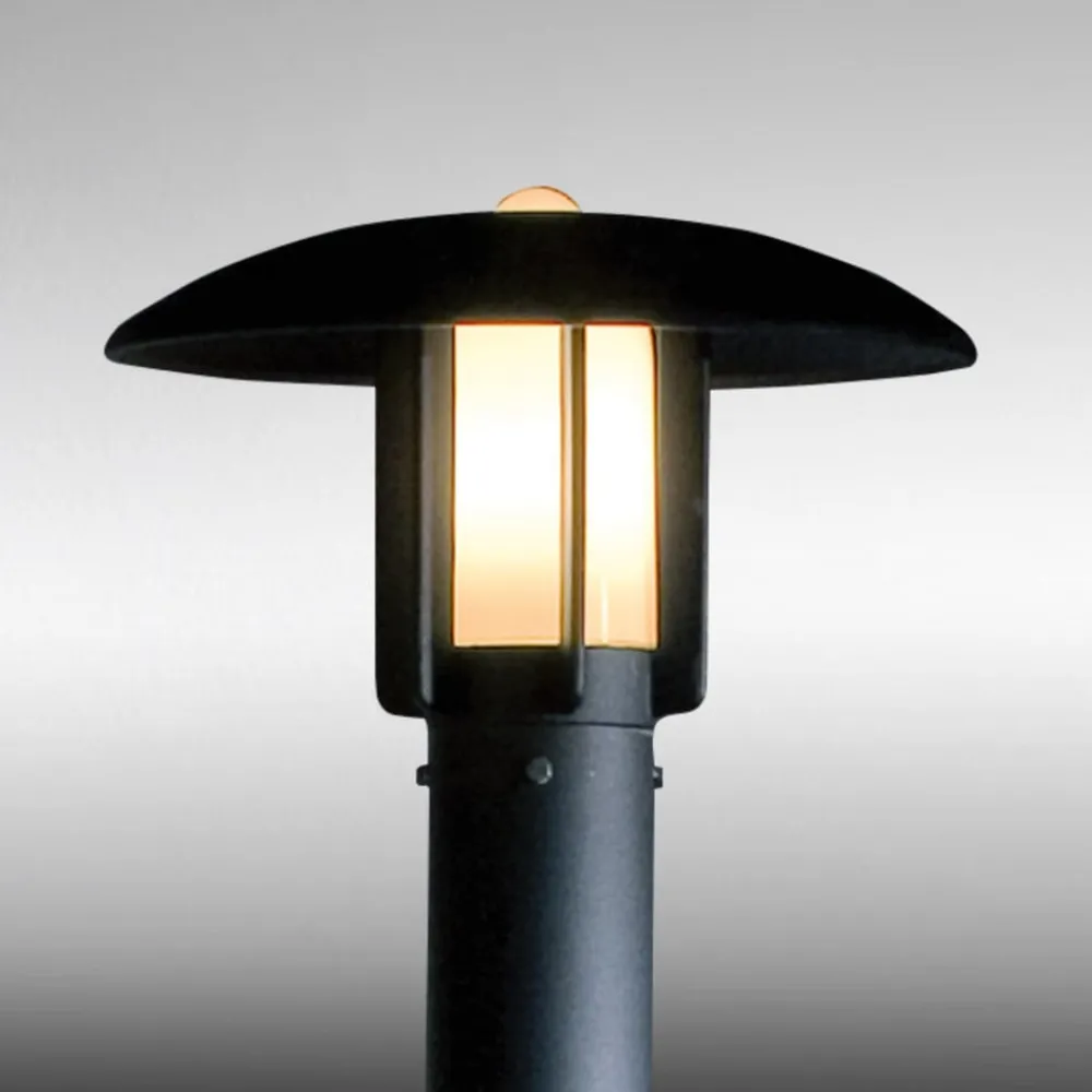Heimdal lyktestolpe: robust og enkel utvendig Denne armaturen imponerer med sin sikkerhetsfunksjon. Med en høyde på 2 meter og en kraftig lysstyrke sørger den for sikkerhet på stien. Eksteriøret er designet av svartlakkert aluminium og en opalhvit lampeskjerm. Kapslingsgrad IP44 gjør armaturen egnet for utendørs bruk. Pærene til lampen er ikke inkludert i leveransen.