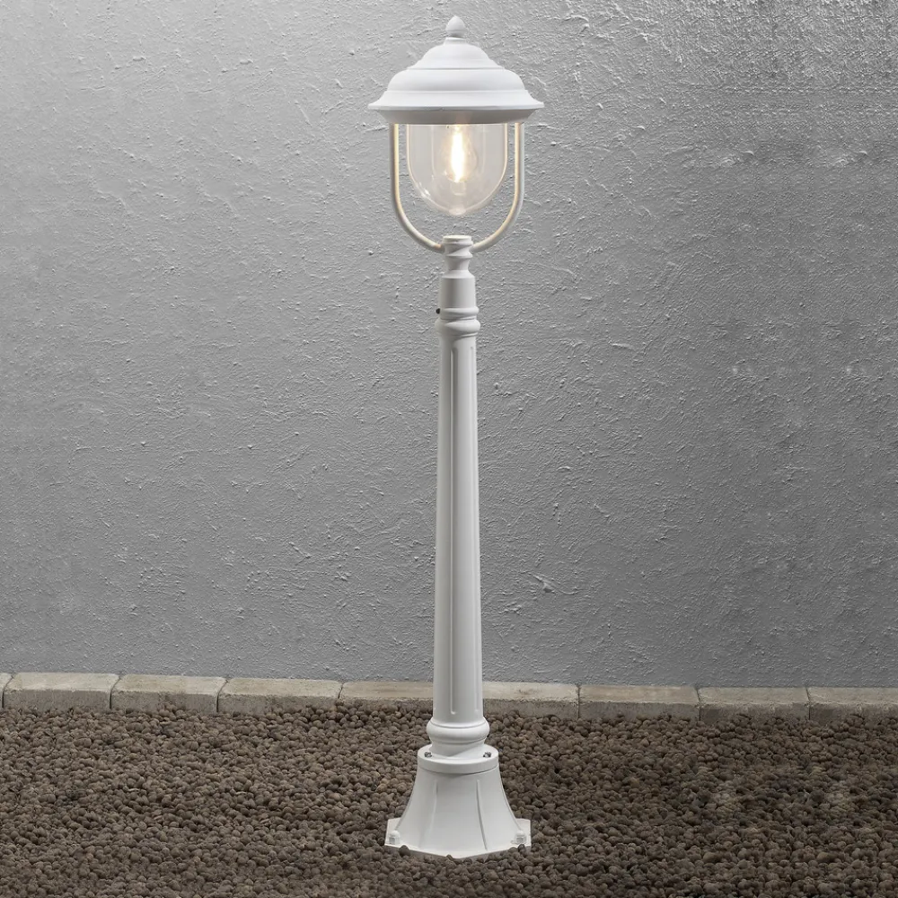 PARMA er en klassisk gatelykt utført i aluminium med klare lampeglass. Det klare lampeglassene garanterer en optimal belysning. Skjermens vakre form og ornamentene på lampen og stolpen gir lampen et lett nostalgisk resultat