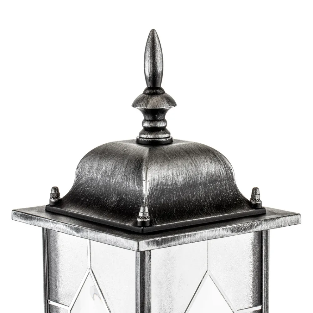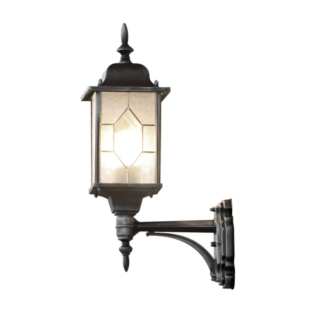 Den vegghengte utelampen MILANO av aluminium er tilgjengelig med lanterneformet stående eller hengende lampehus. Begge variantene ser flotte ut med akrylglasset som ligner blykrystallglass og de flotte dekorative linjene. Man oppnår godt belysning gjennom det klare akrylglasset.
