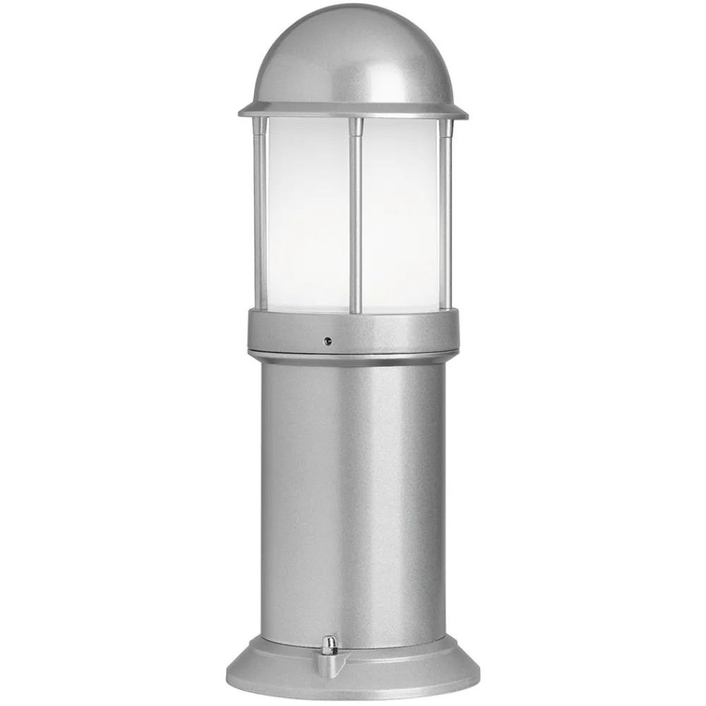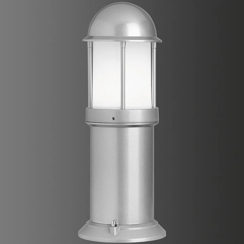 Den avrundede sokkellampen Marco i presstøpt aluminium gir uteområdet et litt maritimt preg og – montert på vegger eller sokler – sørger for behagelig lysstyrke og samtidig sikkerhet på eiendommen. Den hvite glassdiffusoren lar lyset skinne jevnt rundt uten å bli blendet. Sokkellyset, som har beskyttelsesklasse IP44, er egnet for bruk av LED-lamper og energisparende lamper.
