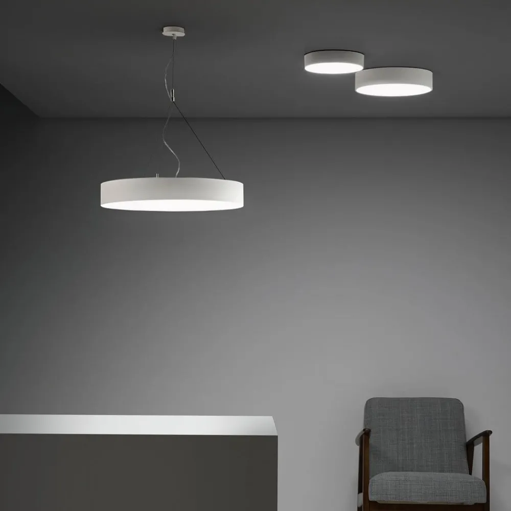 Takket være denne opphengingen kan Caprice-armaturen monteres med en oppheng på opptil 150 cm. stang og baldakin holdes helt i en klassisk hvit. Det overordnede konseptet med sitt enkle utseende merkes ikke umiddelbart og kan derfor integreres i forskjellige interiører. Opphenget er designet uten synlige skruer.