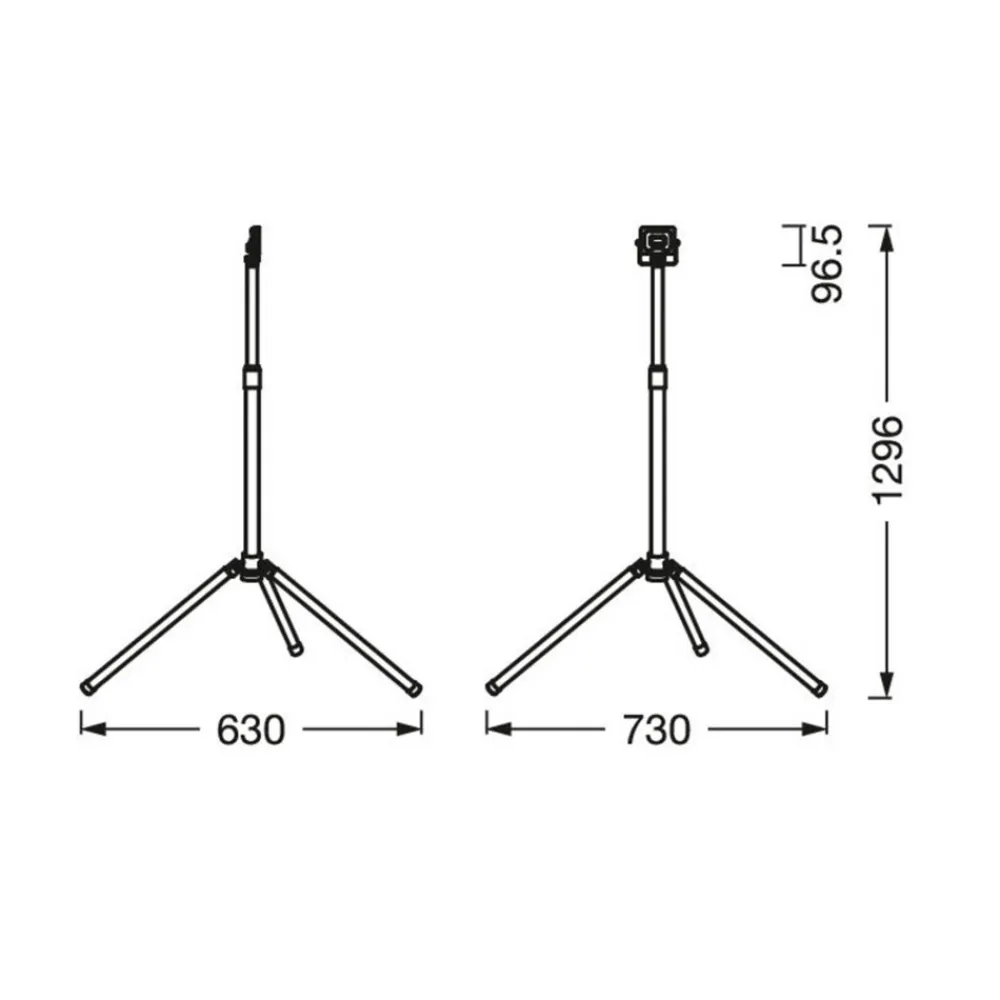 LED-byggespot Worklight Value Tripod LED-byggespot Worklight Value Tripod er utstyrt med en stabil stativfot og en spotlight som kan roteres 360° og svinges 180°. Stativet kan justeres i høyden til en totalhøyde på 180 cm. LED-spotlighten kan brukes til å belyse enhver byggeplass med dagslyshvitt lys. – Med 150 cm lang tilkoblingskabel med støpsel – Egnet for omgivelsestemperaturer fra -20 til 40 °C – Beskyttelsesklasse: lampehode IP65, hus IP54, støpsel IP44