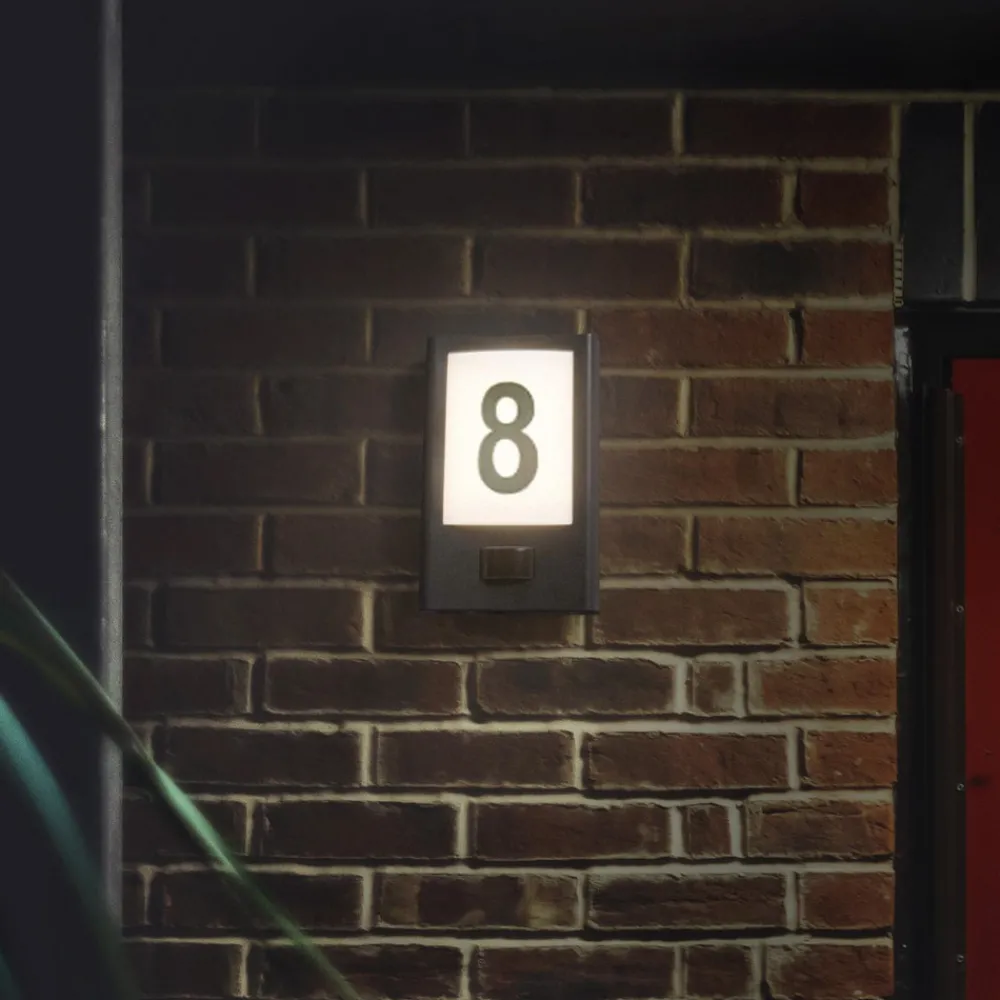 LED-utomhuslampe Endura Style med sensorer Den mørkegrå LED-utomhuslampen Endura Style i vinkelform er perfekt for inngangspartier og gir en behagelig, blendingsfri belysning takket være den frostede skjermen og de varmhvite LED-lampene, som lyser opp et stort område og tennes automatisk takket være bevegelsesdetektoren med dagslyssensor som er diskret integrert i armaturens ramme. Armaturhuset er laget av aluminium og plast, mens avskjermingen er laget av polykarbonat (PC). Armaturen er rask og enkel å installere og leveres med alt monterings- og tilkoblingstilbehør, inkludert skruer og plugger. Sensordata: – Sensorens deteksjonsvinkel 100° – Rekkevidde 5 til 8 meter – Optimal monteringshøyde 2 – 3 meter – Justerbar responslysstyrke – Justerbar belysningstid fra 30 sekunder til 5 minutter