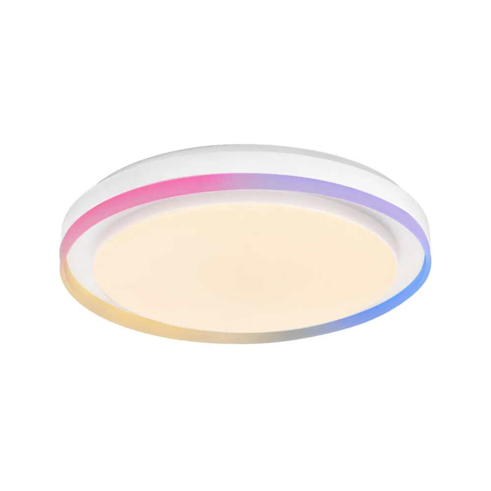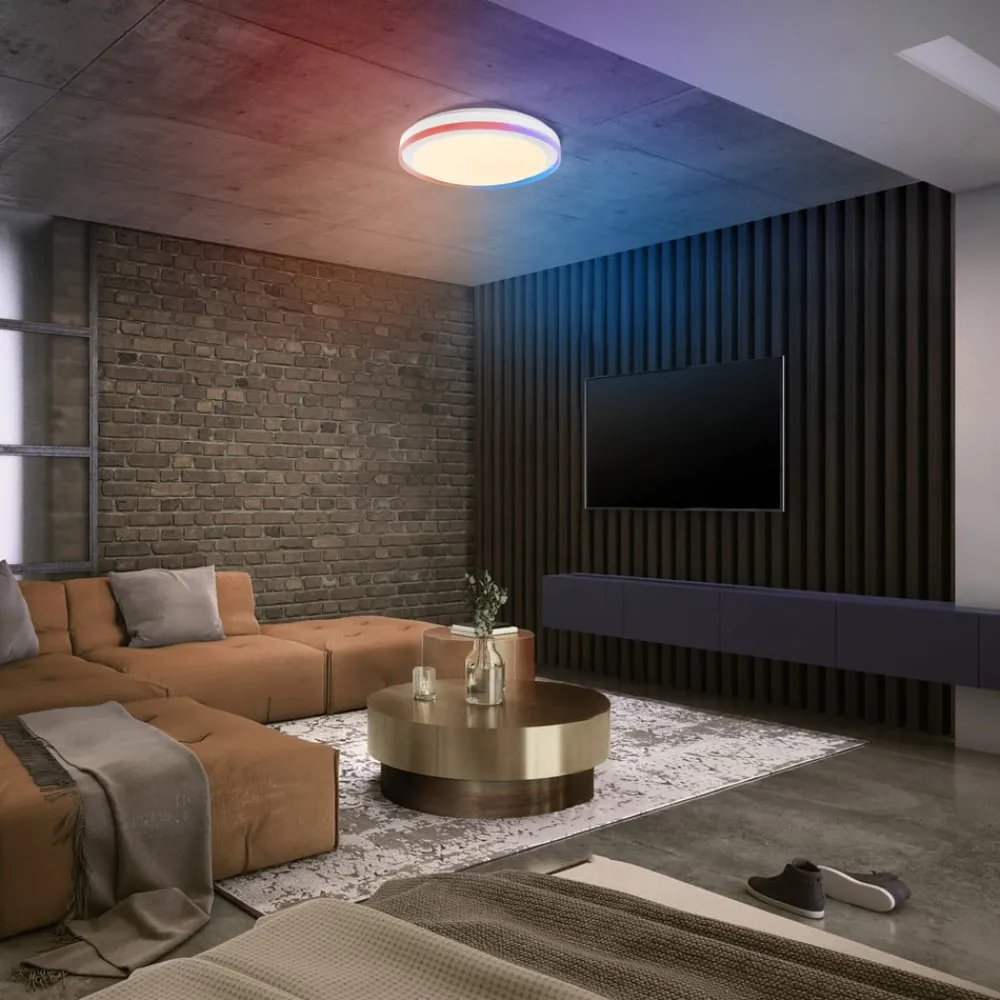 Rund LED-takarmatur Orbis Zest med hoved- og sidelys – smart styrbar takket være LEDVANCE SMART WiFi-teknologiLED-takarmaturen Orbis Zest kombinerer funksjonell og dekorativ belysning for innendørs bruk. Den nedovervendte Tunable White LED-hovedlyskilden, som er integrert bak et opalt plastdeksel, kan brukes til varmhvit til dagslyshvit allmennbelysning uansett lysstyrke. Den forskjøvede stålrammen er utstyrt med en «Magic RGB»-LED-ring som kan slås på som et fargerikt stemningslys i en fritt valgbar nyanse. Betjeningen skjer via app eller talekommando etter WLAN-integrasjon.Tekniske data / kompatibilitet:- kan styres via LEDVANCE SMART WiFi-appen (gratis tilgjengelig for iOS og Android); muliggjør forhåndsinnstillinger og automatisering- stemmestyring via Google Assistant eller Amazon Alexa mulig- RGB og fargetemperatur justerbar: 2700 K – 6500 K- dimbar- nettverksprotokoll: WiFi