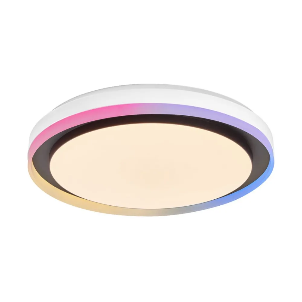 Rund LED-takarmatur Orbis Zest med hoved- og sidelys – smart styrbar takket være LEDVANCE SMART WiFi-teknologiLED-takarmaturen Orbis Zest kombinerer funksjonell og dekorativ belysning for innendørs bruk. Den nedovervendte Tunable White LED-hovedlyskilden, som er integrert bak et opalt plastdeksel, kan brukes til varmhvit til dagslyshvit allmennbelysning uansett lysstyrke. Den forskjøvede stålrammen er utstyrt med en «Magic RGB»-LED-ring som kan slås på som et fargerikt stemningslys i en fritt valgbar nyanse. Betjeningen skjer via app eller talekommando etter WLAN-integrasjon.Tekniske data / kompatibilitet:- kan styres via LEDVANCE SMART WiFi-appen (gratis tilgjengelig for iOS og Android); muliggjør forhåndsinnstillinger og automatisering- stemmestyring via Google Assistant eller Amazon Alexa mulig- RGB og fargetemperatur justerbar: 2700 K – 6500 K- dimbar- nettverksprotokoll: WiFi