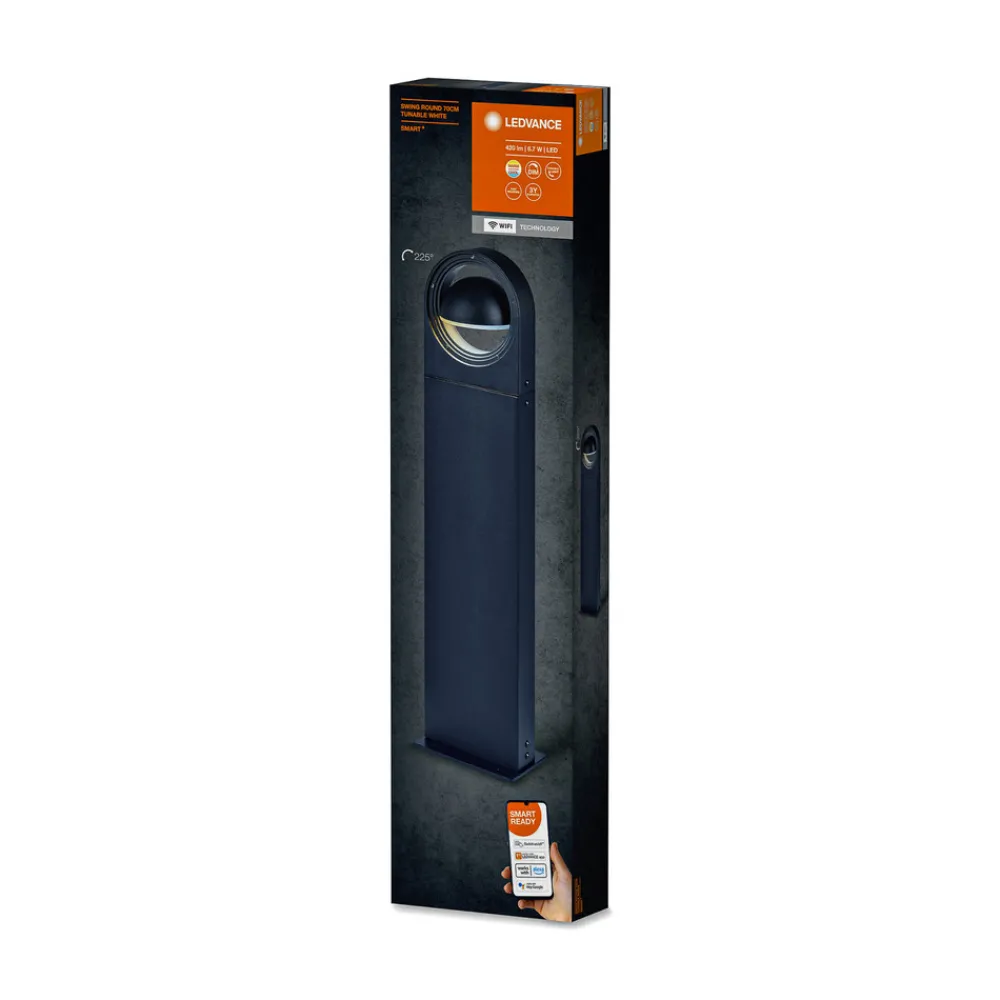 LED-stilyset Swing Round er ikke bare optisk, men også teknisk oppdatert. Den består av sortlakkert aluminium og er utstyrt med et rundt lampehode, som kan dreies 225° i rammen for å rette lysutgangen i ønsket retning. Lysstyrke og fargetemperatur kan justeres etter preferanser. Takket være SMART+ WiFi-teknologi kan lyset styres ved hjelp av en smarttelefon eller nettbrett via LEDVANCE SMART+-appen eller ved stemmekommando via Amazon Alexa eller Google Assistant.