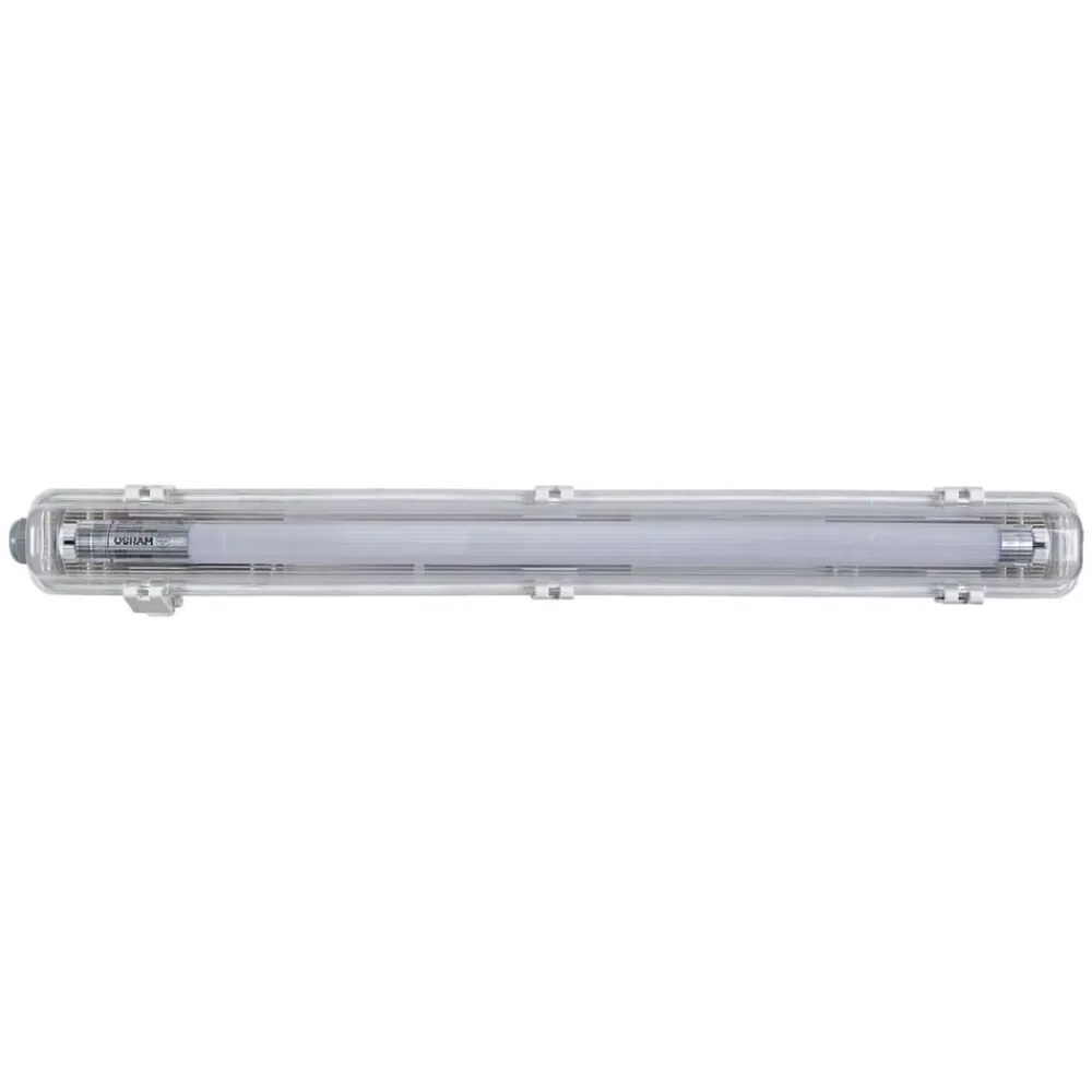 LEDVANCE Submarine PCR: Robust belysning for verksteder, kjellere og fuktige rom Oppdag Submarine PCR G13 T8 840, en fuktsikker armatur som ikke bare imponerer med sin holdbarhet, men også med sin høye IP65-klassifisering. Armaturen er spesialdesignet for krevende miljøer som verksteder og kjellere, der fukt og støv er allestedsnærværende. Den standardiserte G13-sokkelen gjør det enkelt å skifte ut LED-lyskilden, noe som forenkler vedlikeholdet og øker fleksibiliteten. LED-teknologien sørger for energibesparende belysning som ikke bare lyser opp rommet effektivt, men også bidrar til å redusere driftskostnadene. Med LEDVANCE Submarine PCR G13 T8 840 velger du en pålitelig belysningsløsning som forvandler rommet til et produktivt miljø.