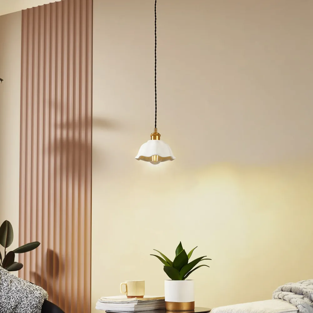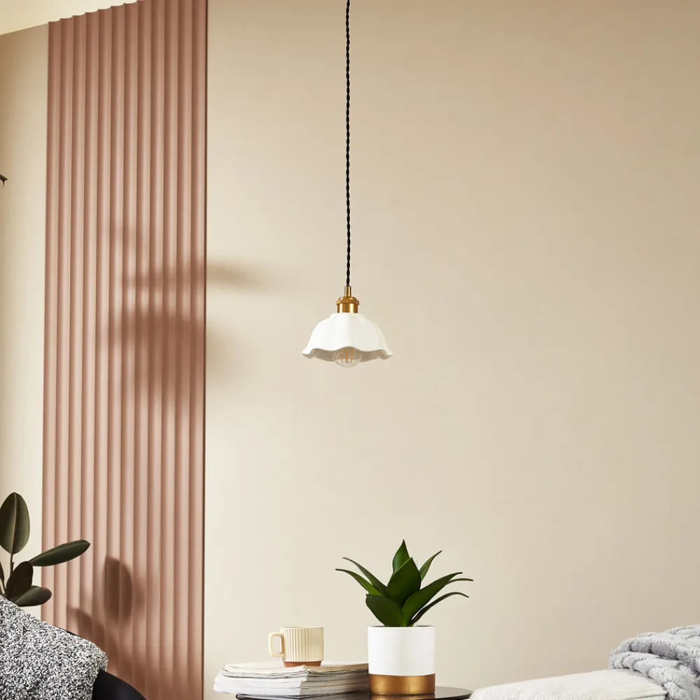 Lindby Annegret hengelampe, Ø 18 cm, keramikk, hvit/messing Sale