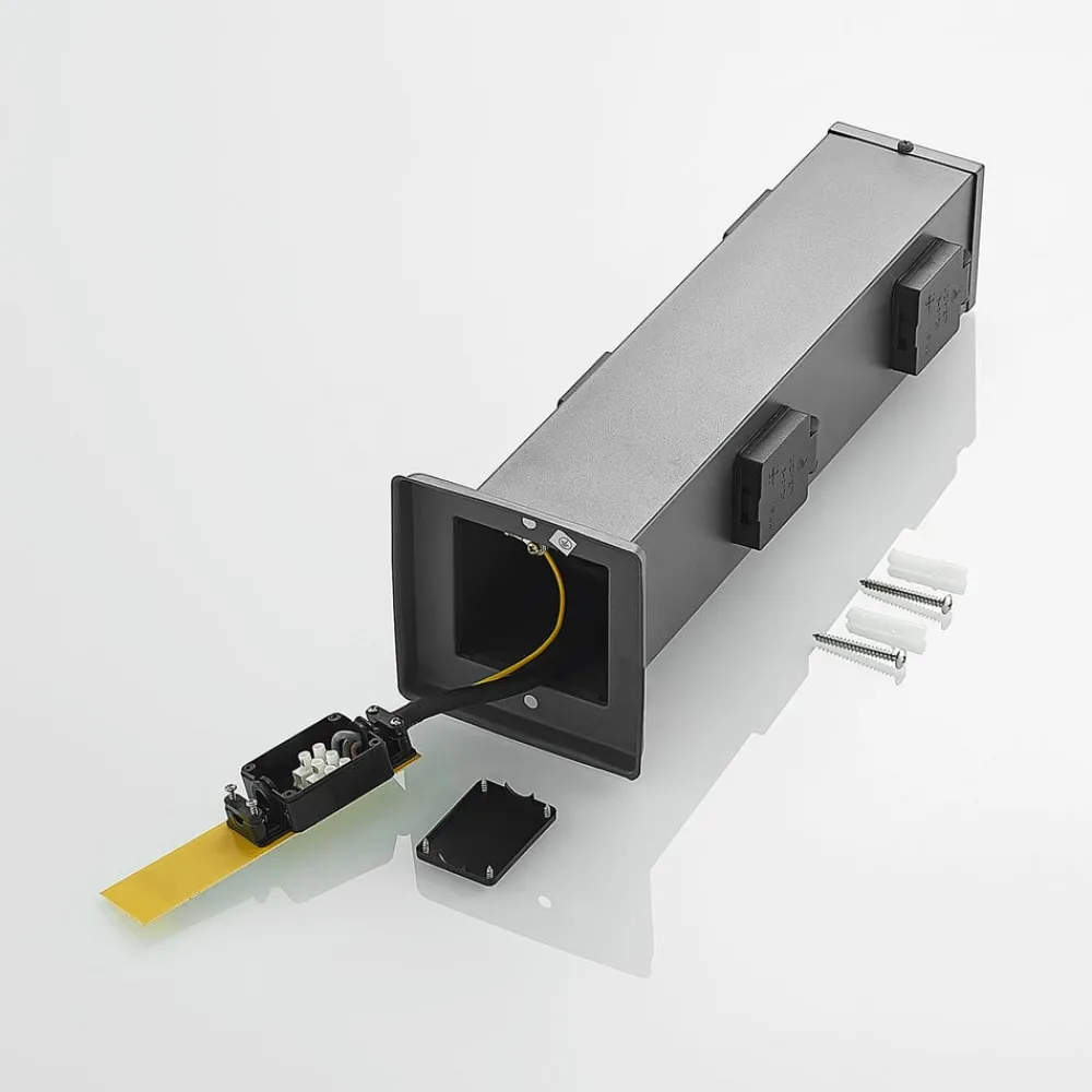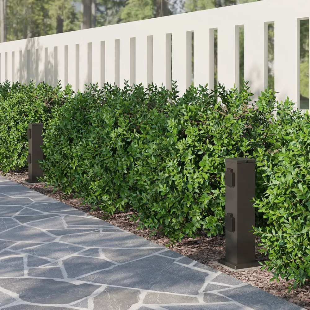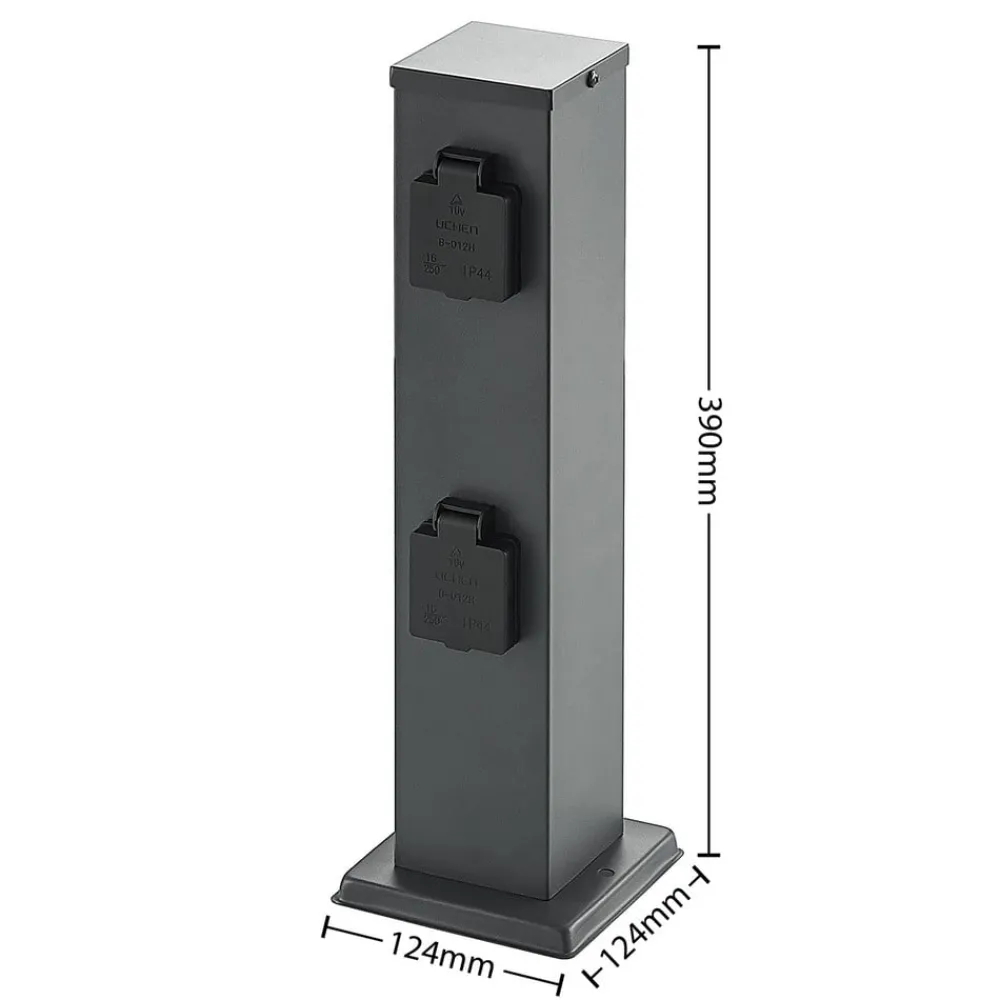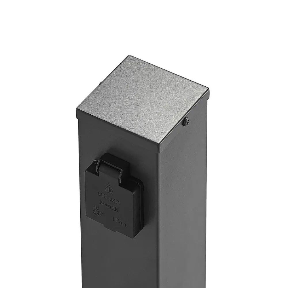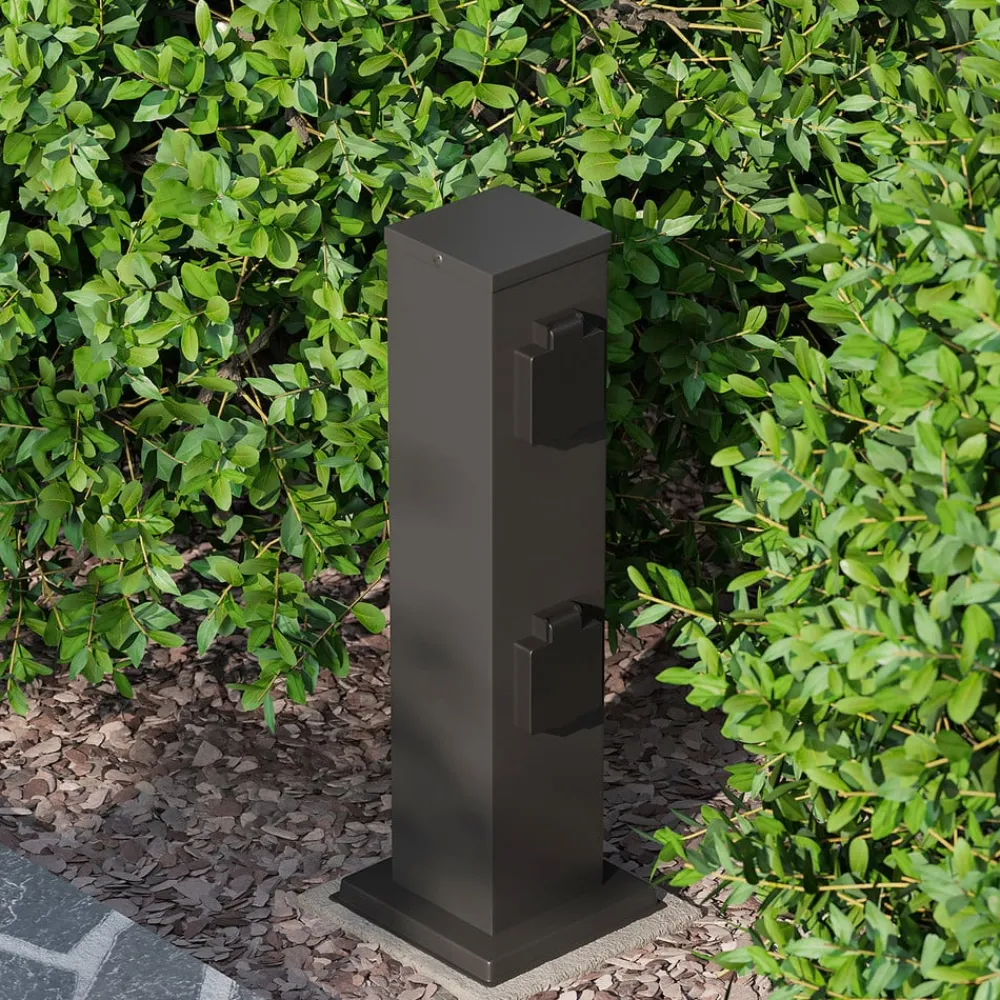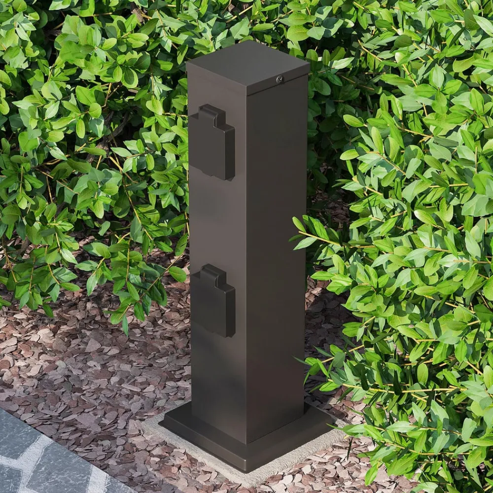 Stikkontaktkolonnen Aviko kommer i mørkt design. Den var laget av rustfritt stål og belagt med en mørk grå finish. De fire kontaktene er godt beskyttet mot vind og vær med hetter. Takket være IP44- kapslingsgrad kan denne kolonnen brukes utendørs lenge – ideell for fortauet eller terrassen.