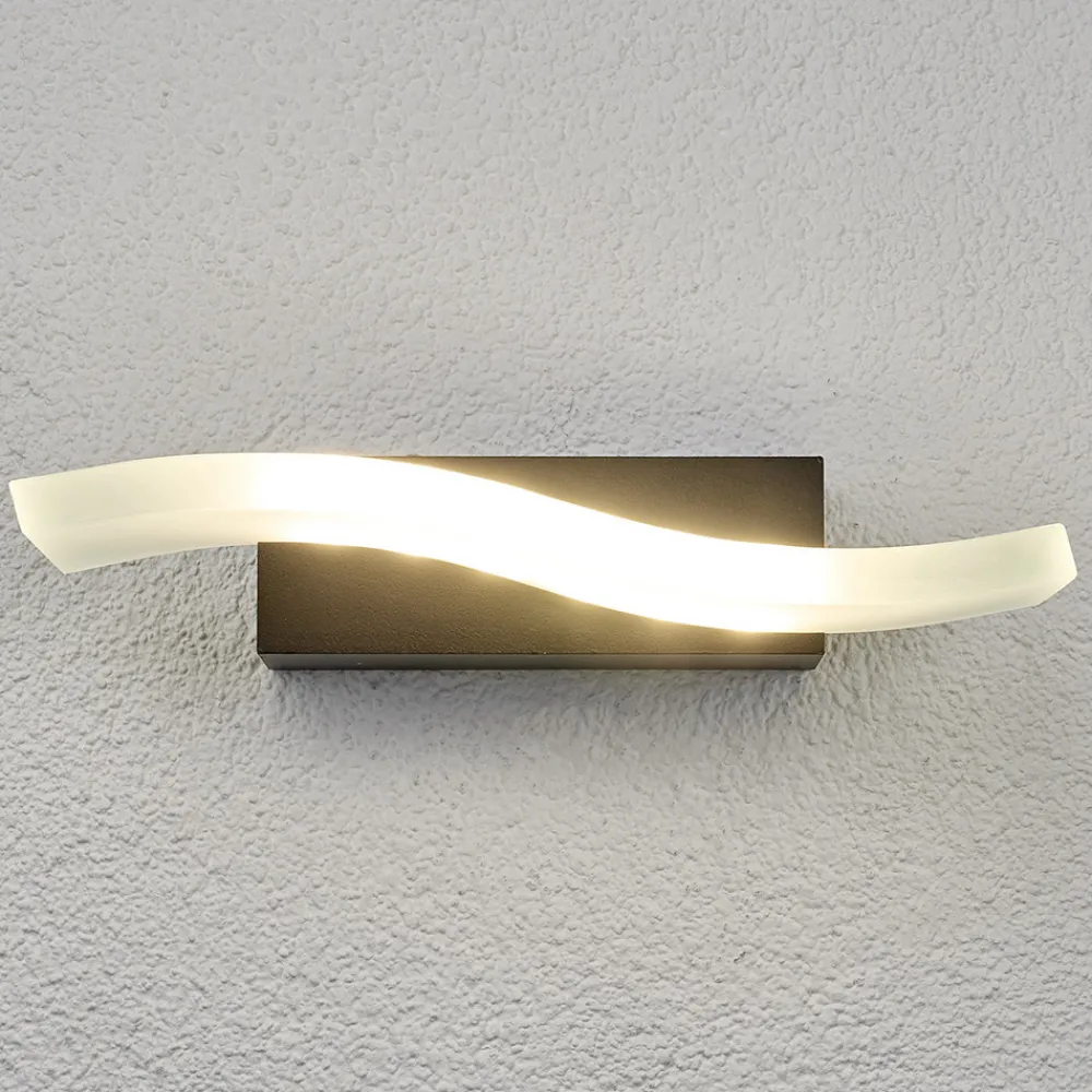 Formfin vegghengt LED-utelampe Jirka med bølgeformet glasselement