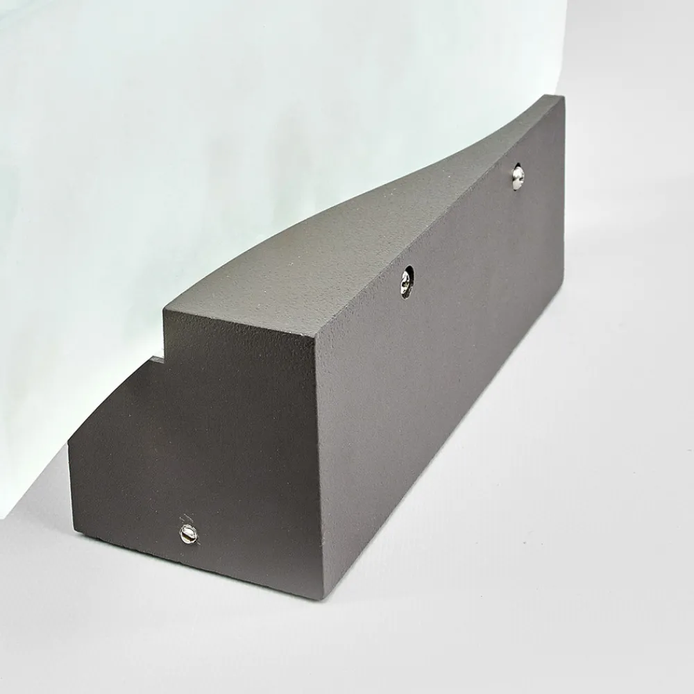 Veggfestet på denne LED-utelampen består av et firkantet aluminiumselement som er lakkert koksgrått. Foran dette sitter det en glassdiffusor med lekker bølgeform. Denne fordeler det varmhvite LED-lyset på en særlig jevn og fin måte, takket være sin satinerte overflate. Utelampens design er moderne og gjør Jirka til et blikkfang på fasaden.
