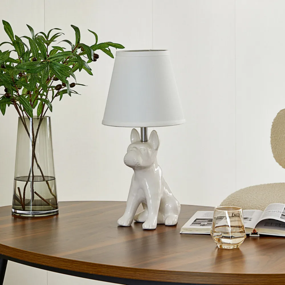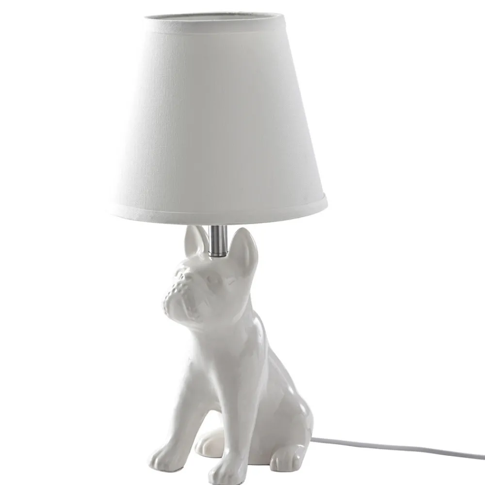Lindby bordlampe Herry, hvit, keramikk, hund, 46,5 cm høy