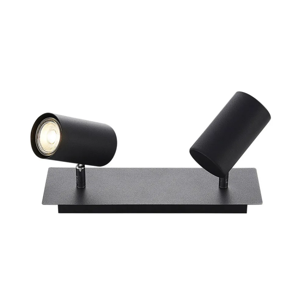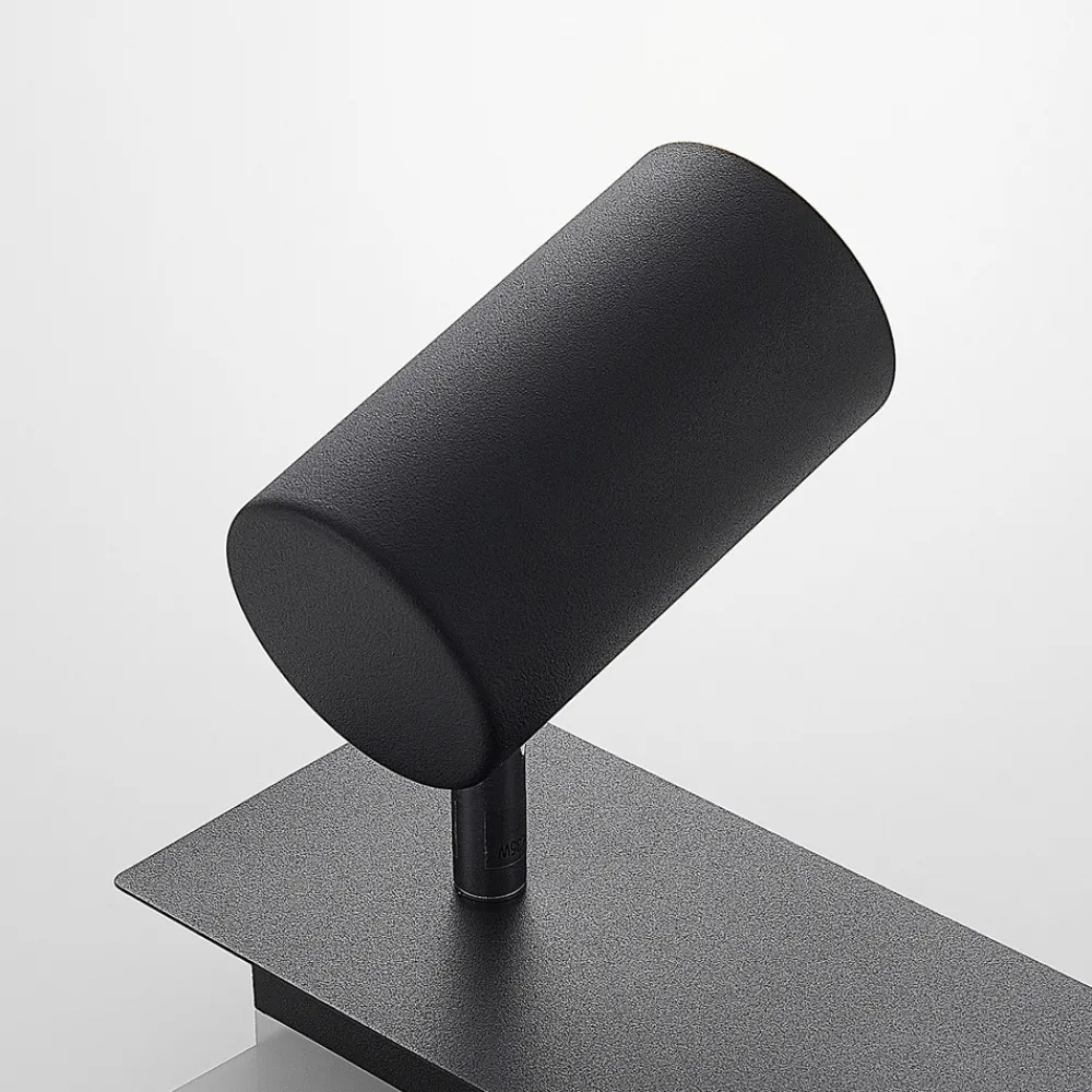 Fleksibel Joffrey downlight i svart Joffrey downlight fremhever minimalisme og klare linjer. Armaturen har en ramme i matt svart metall og to sylindriske lampehoder, som begge kan justeres i posisjon. Det betyr at Joffrey ikke bare passer inn i en rekke ulike romkonsepter, men også kan brukes fleksibelt takket være muligheten for veggmontering.