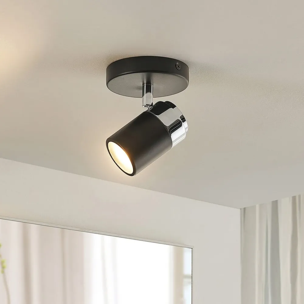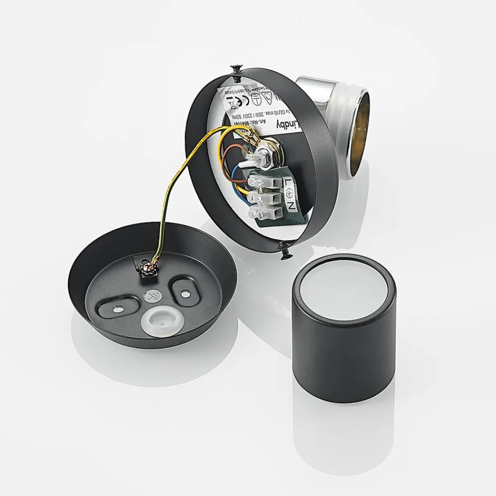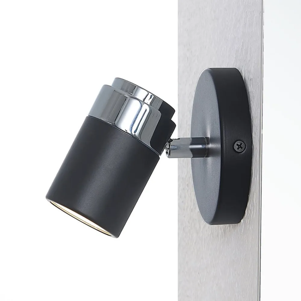 Esami -spotlighten skårer med sin elegante design og kan integreres i mange forskjellige møbler. Både den runde monteringsplaten og den sylindrisk formede spotlighten er laget av metall og har blitt belagt med en svart finish. Spotlysets posisjon kan enkelt justeres slik at visse områder av rommet kan belyses målrettet. Takket være IP44 kapslingsgrad , er den egnet for fuktige rom og kan derfor også installeres på badet.